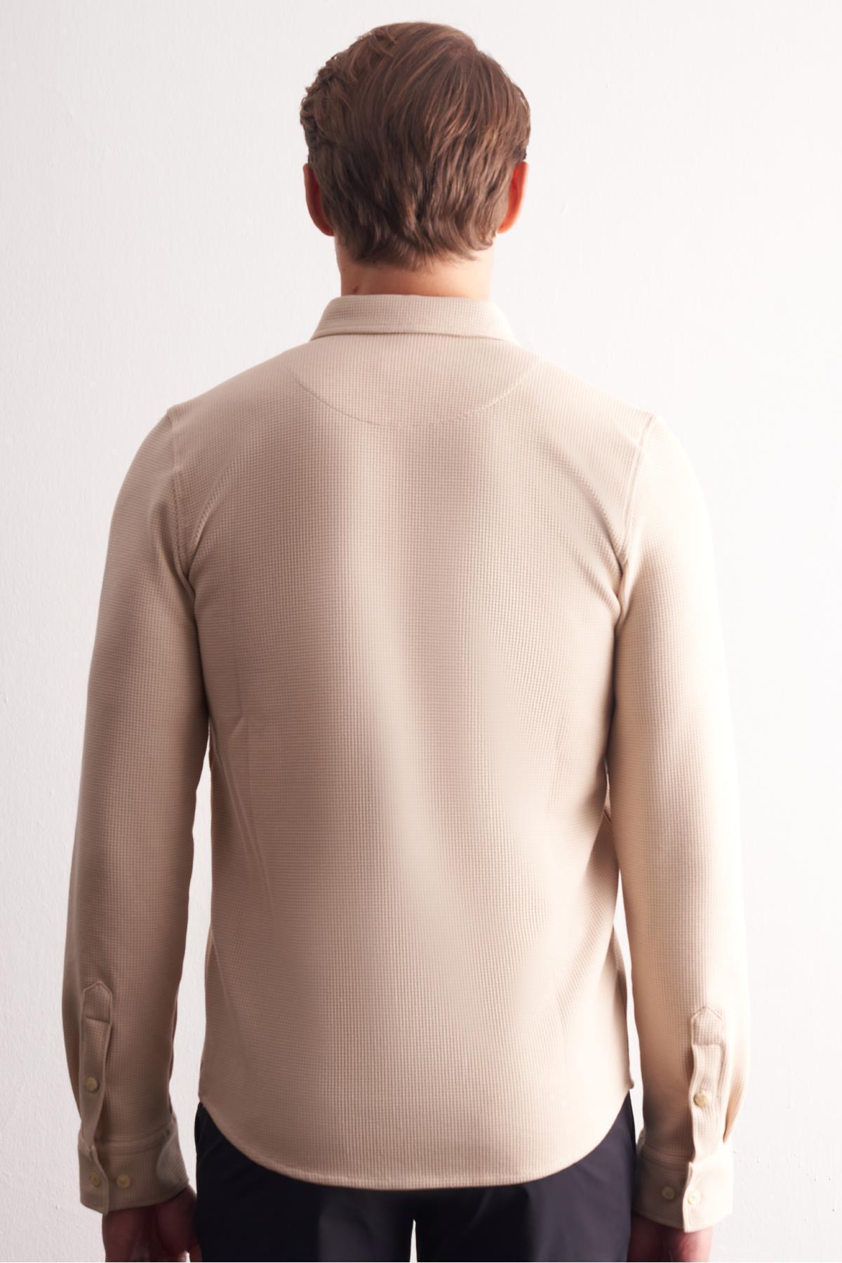پیراهن نخی آستین بلند بژ یقه دکمهدار طرحدار اسلیم فیت کد ۱۰۰۴۲۵۵۲۶۷