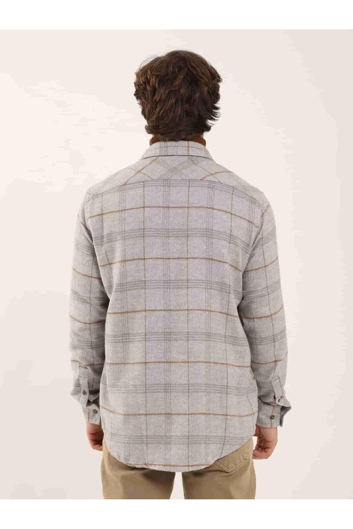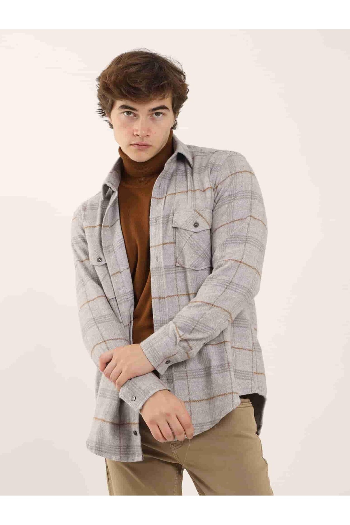 پیراهن مردانه خاکستری طرحدار یقه کلاسیک آستین بلند طرحدار چهارخانه معمولی، مناسب برای آقایان