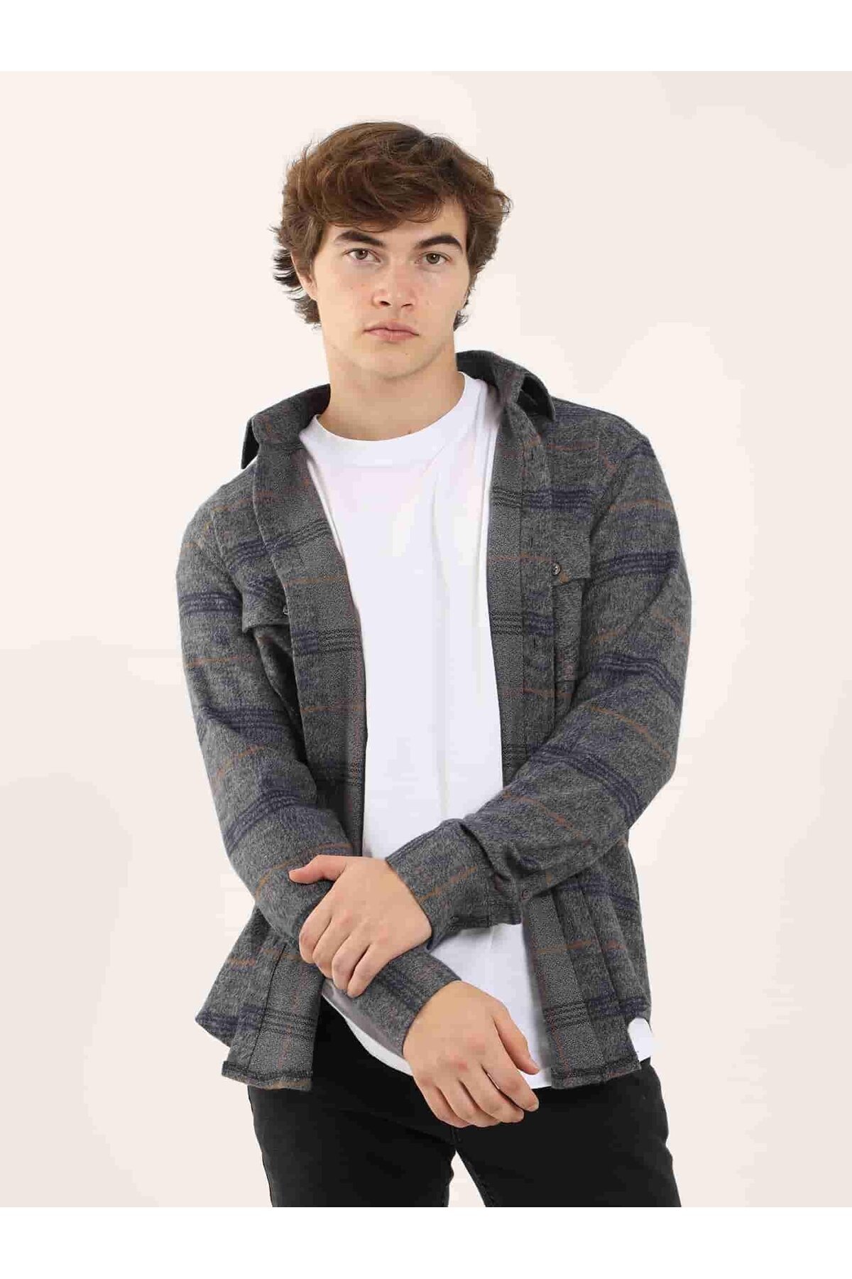 پیراهن مردانه خاکستری دفکتو | C4313AX24HS اورجینال