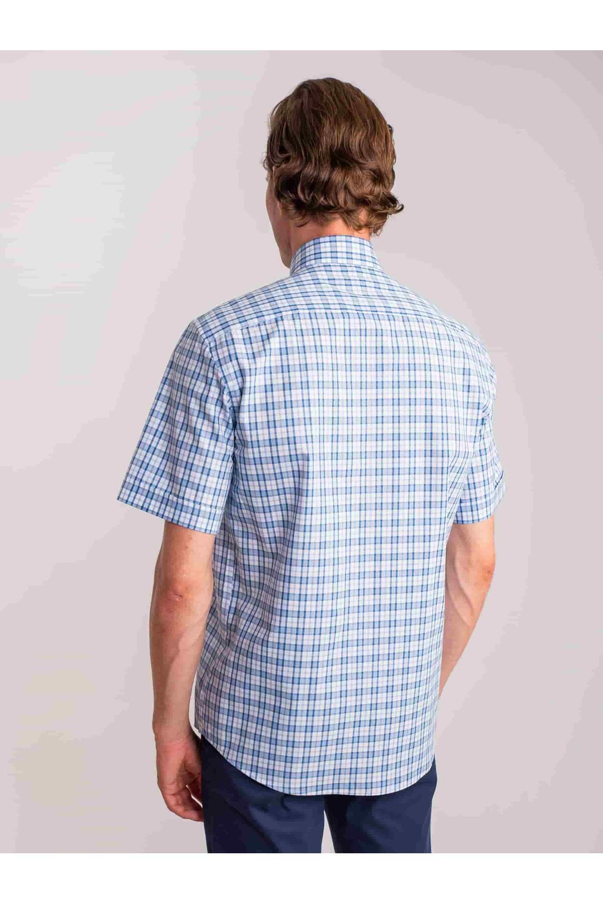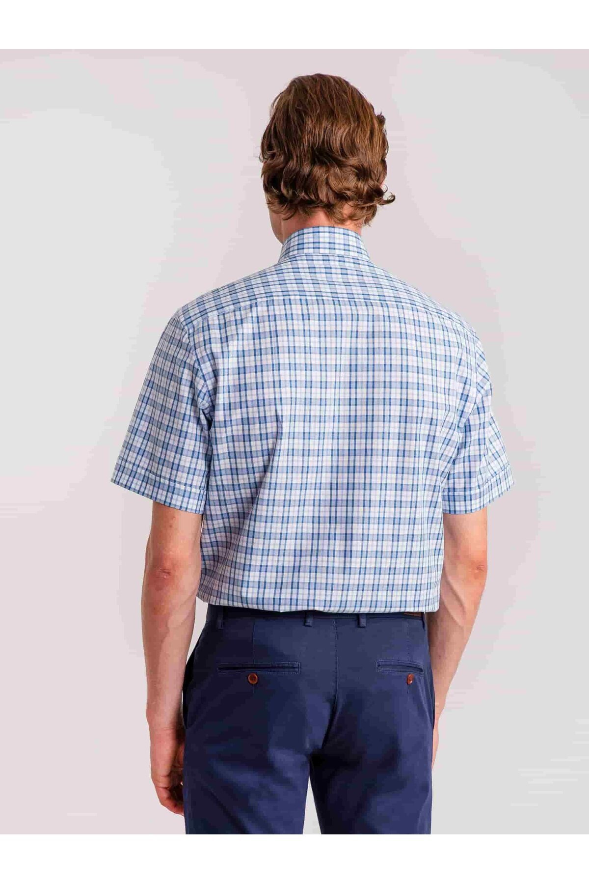 پیراهن آستین کوتاه مردانه آبی طرح چهارخانه التون یقه دکمهدار معمولی – 60608