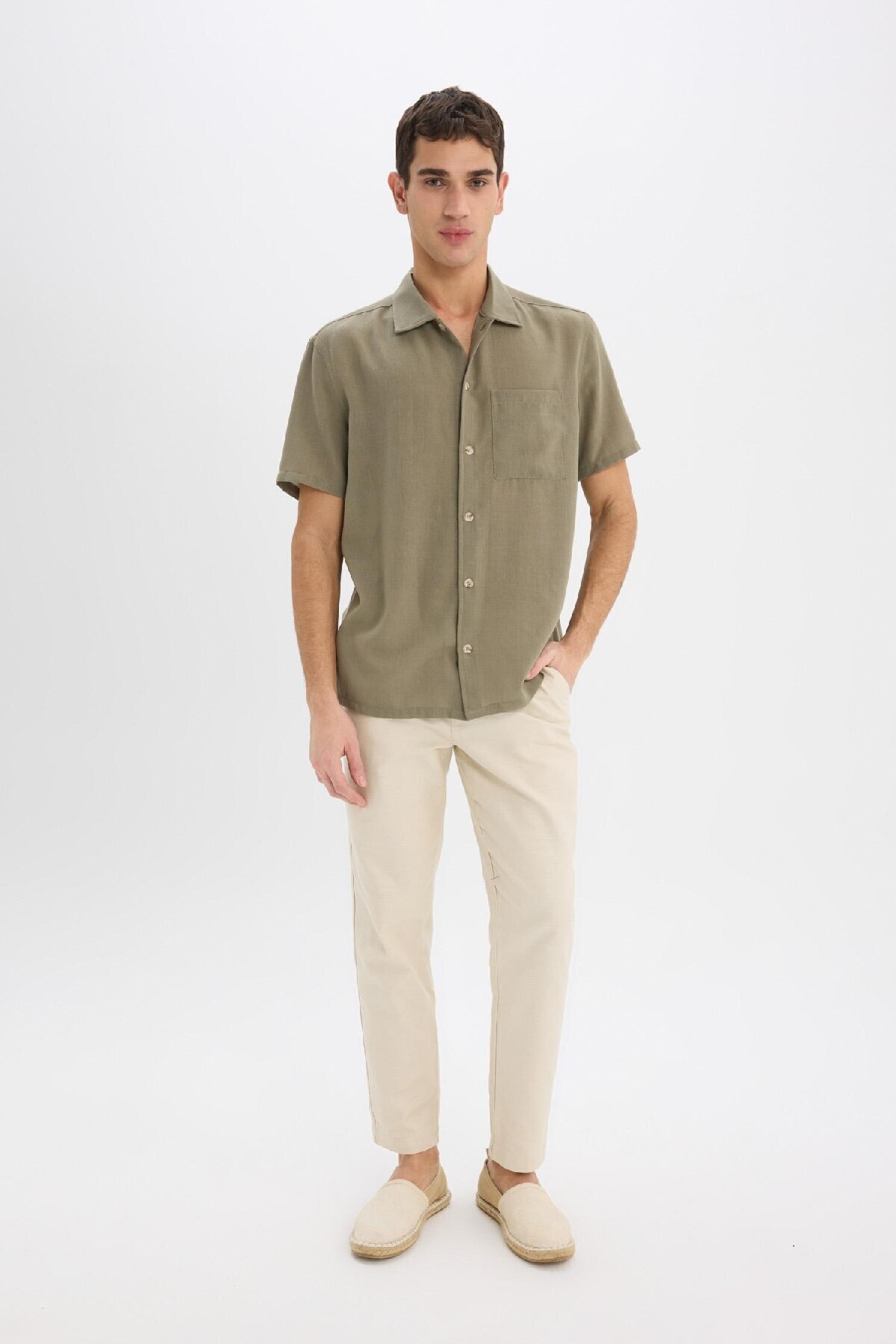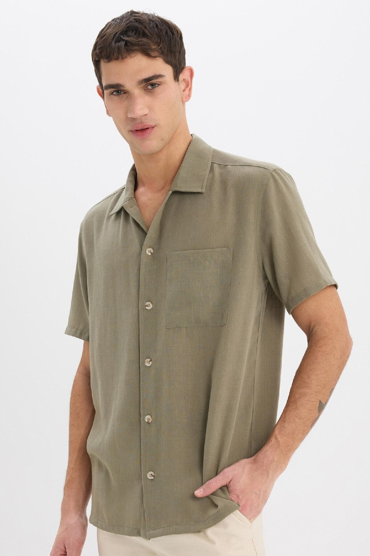 پیراهن دفکتو خاکی آستین استاندارد کتن | | نمایندگی دفکتو