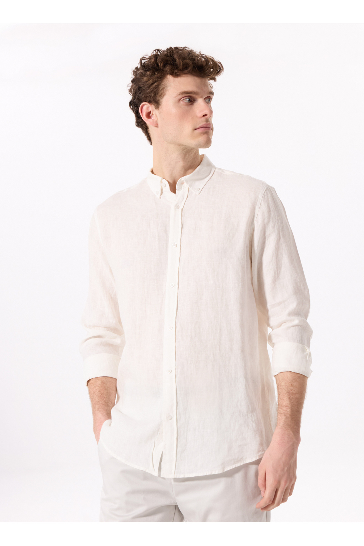 پیراهن فابریکا سفید آستین بلند لینن | | نمایندگی فابریکا