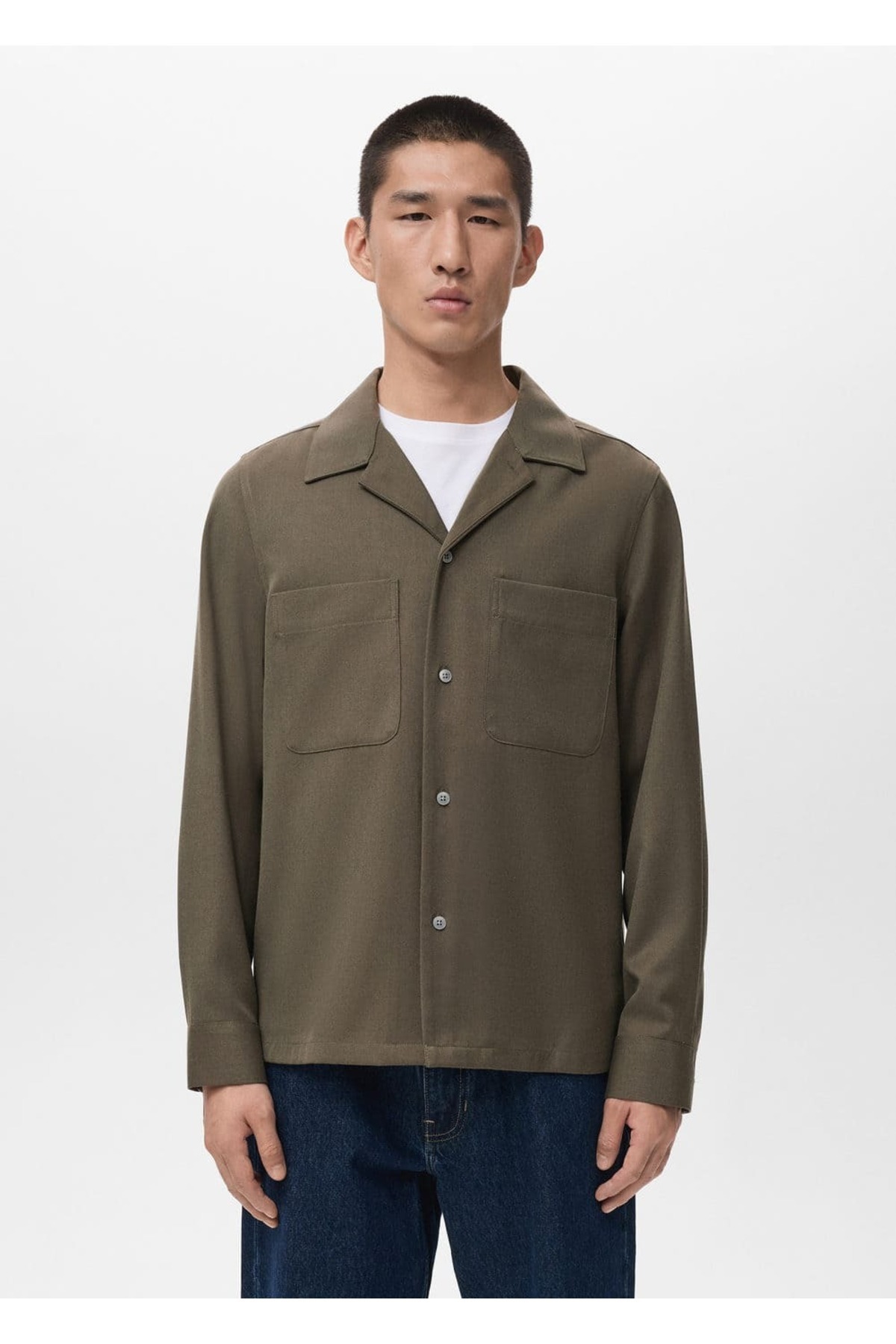 پیراهن مردانه خاکی منگوMANGO Man | 17086726 اورجینال