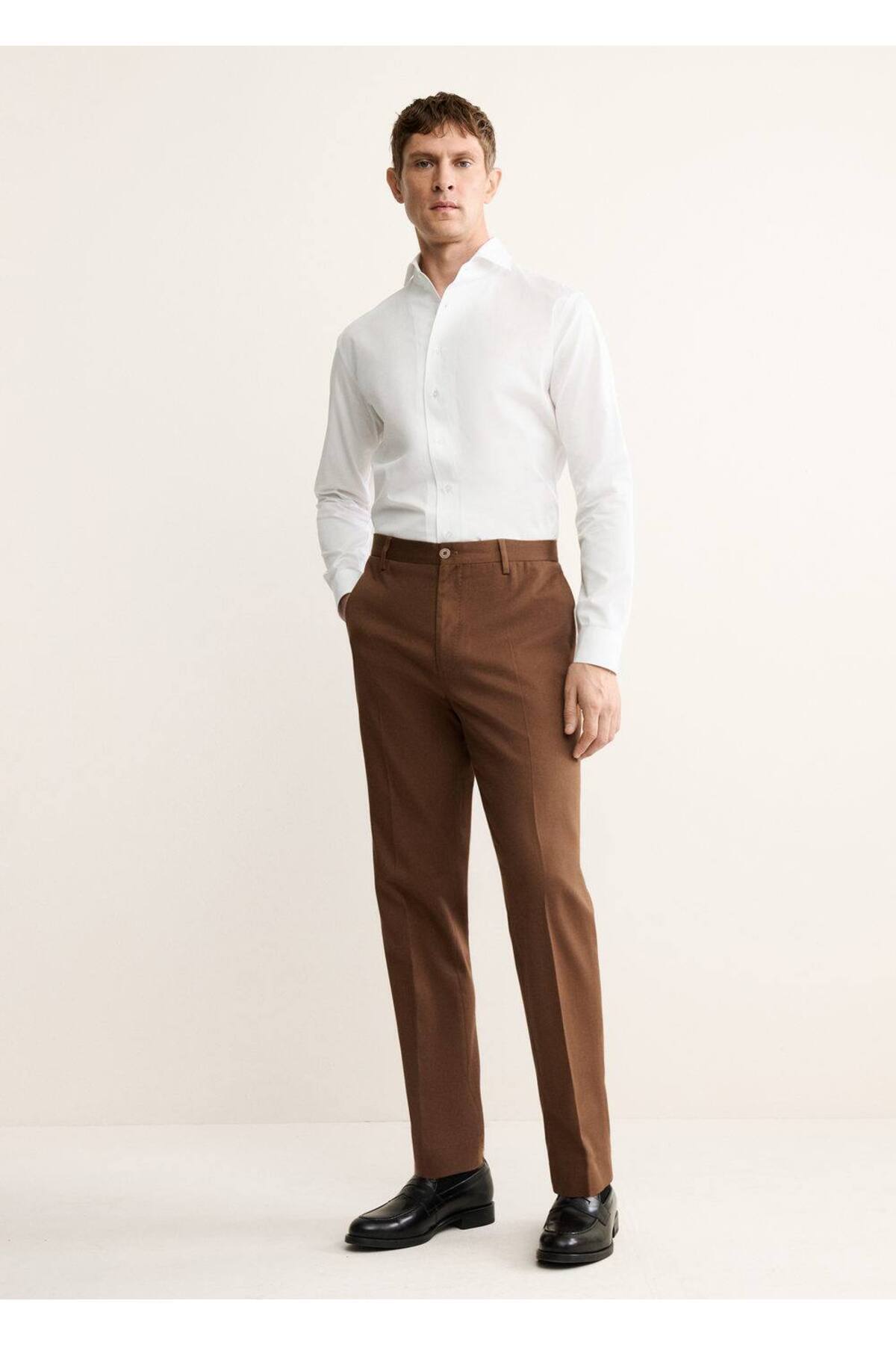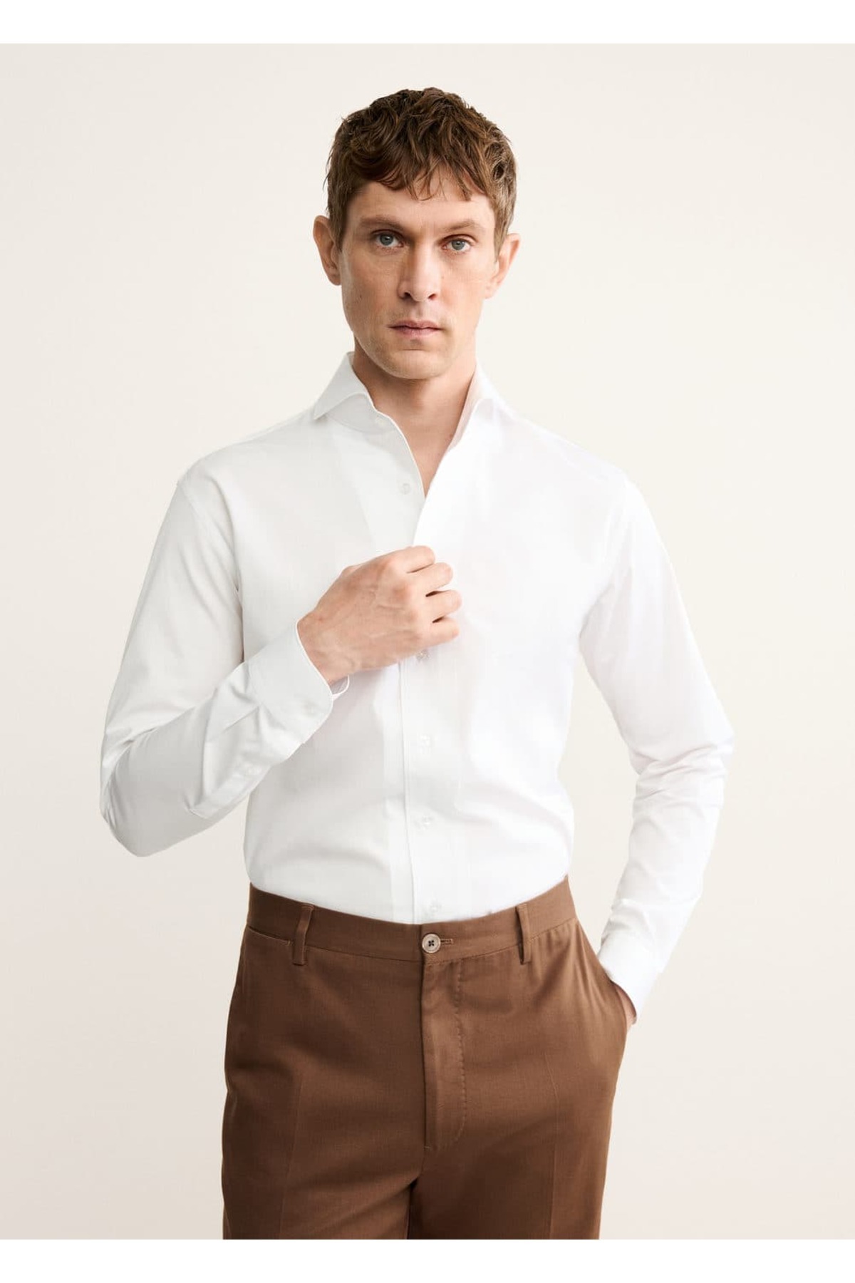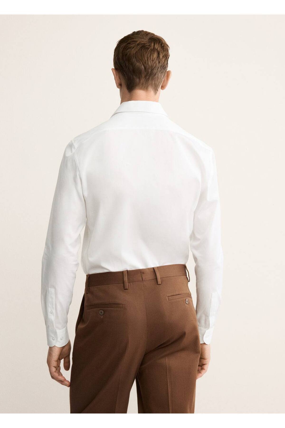 پیراهن مردانه سفید منگوMANGO Man | 17095999 اورجینال