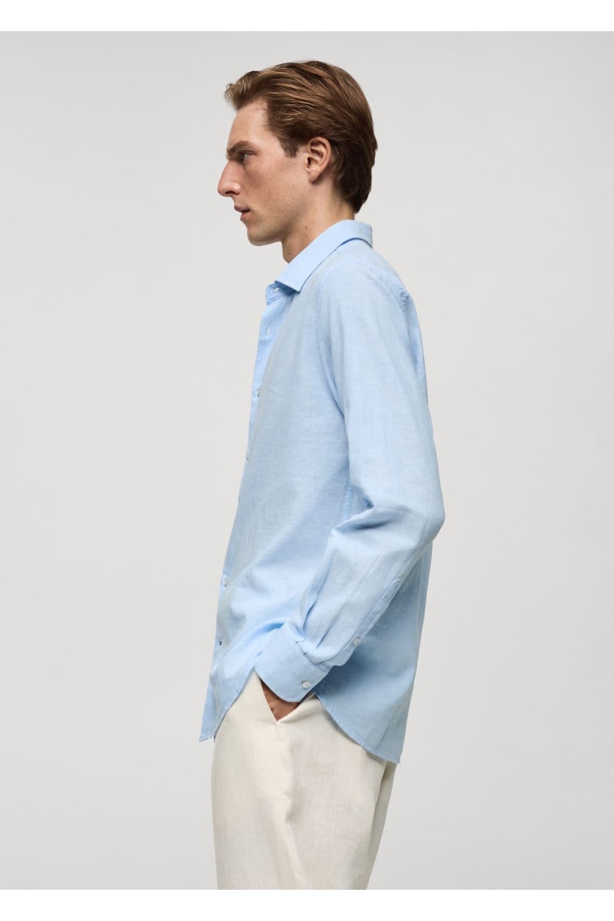 پیراهن مردانه آبی منگوMANGO Man | 67034448 اورجینال