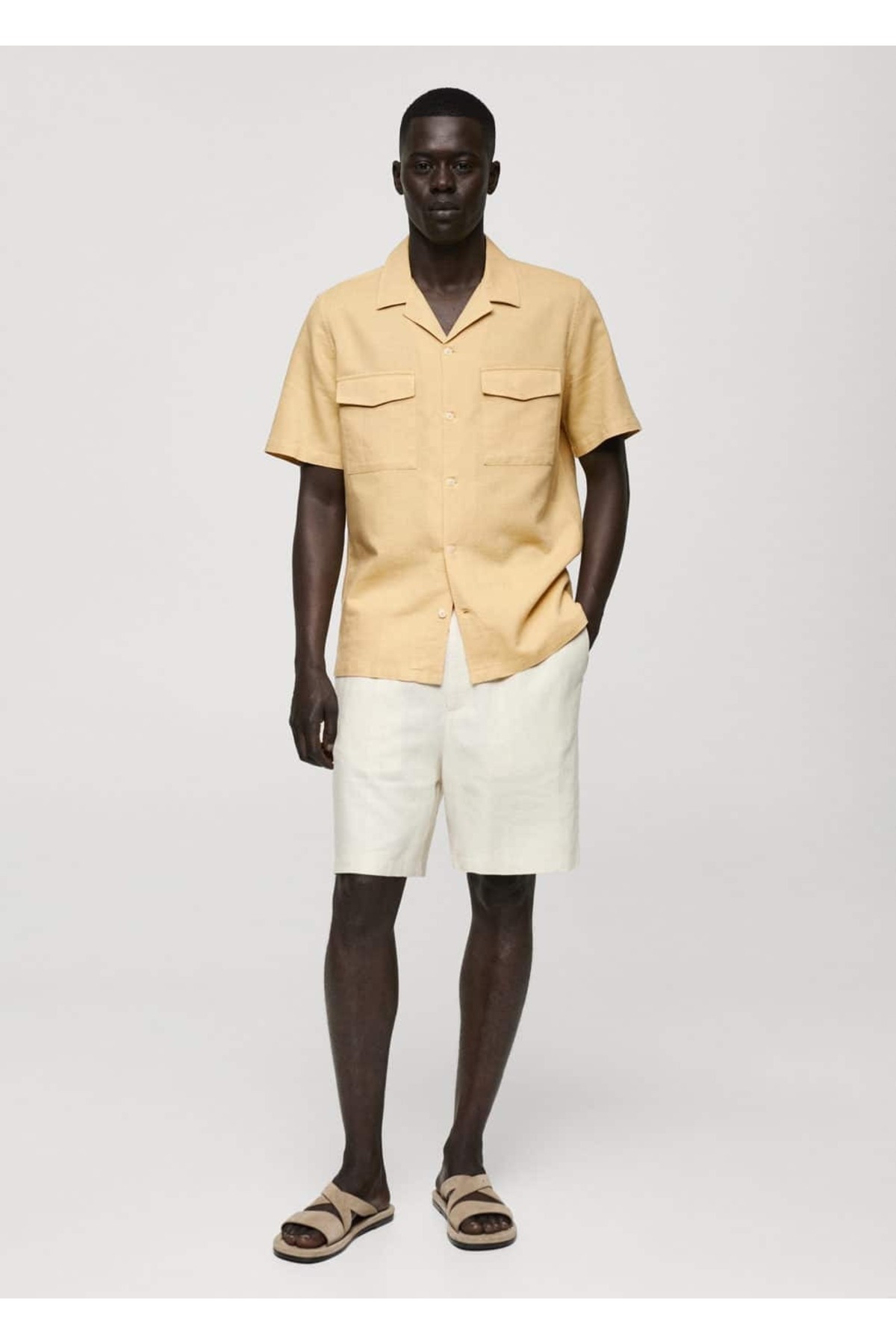 پیراهن مردانه زرد منگوMANGO Man | 77070571 اورجینال