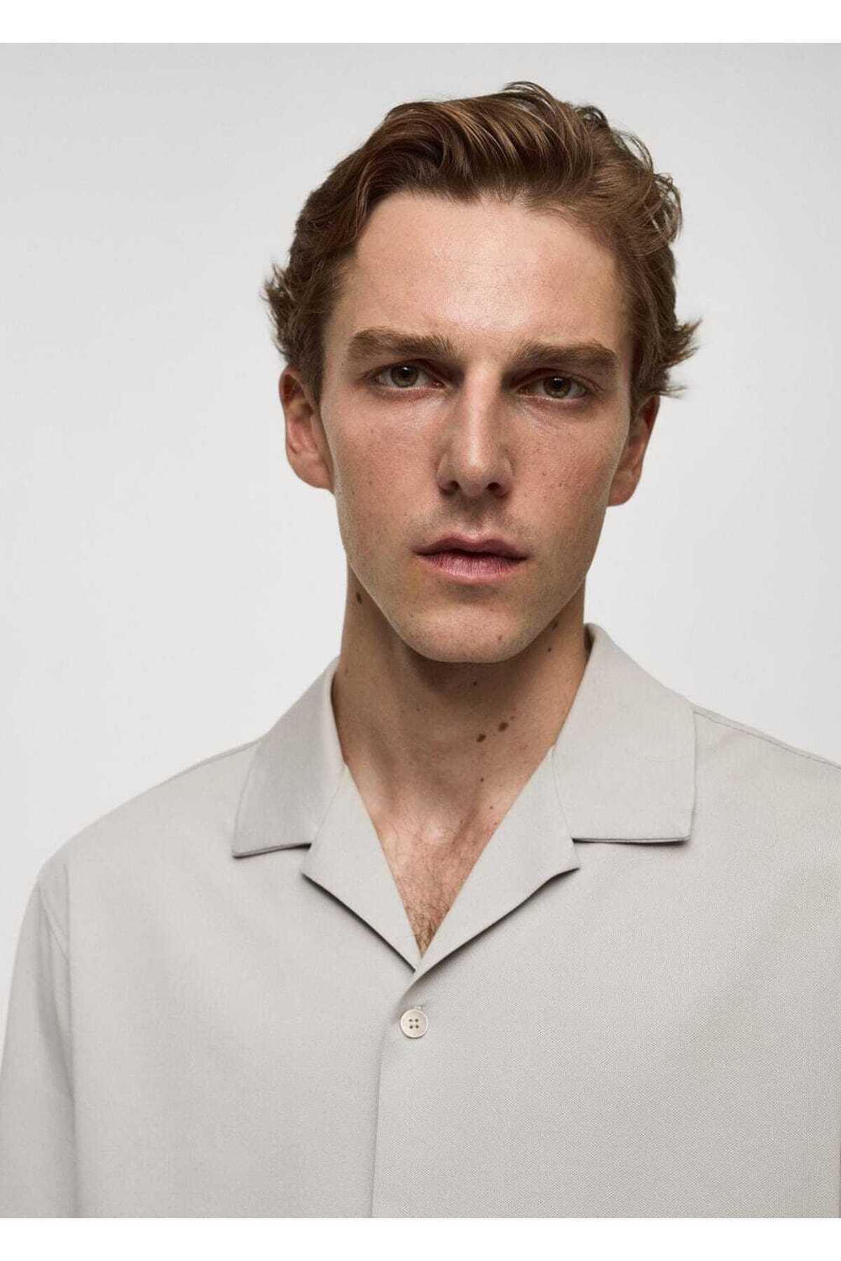 پیراهن مردانه خاکستری منگوMANGO Man | 77072538 اورجینال