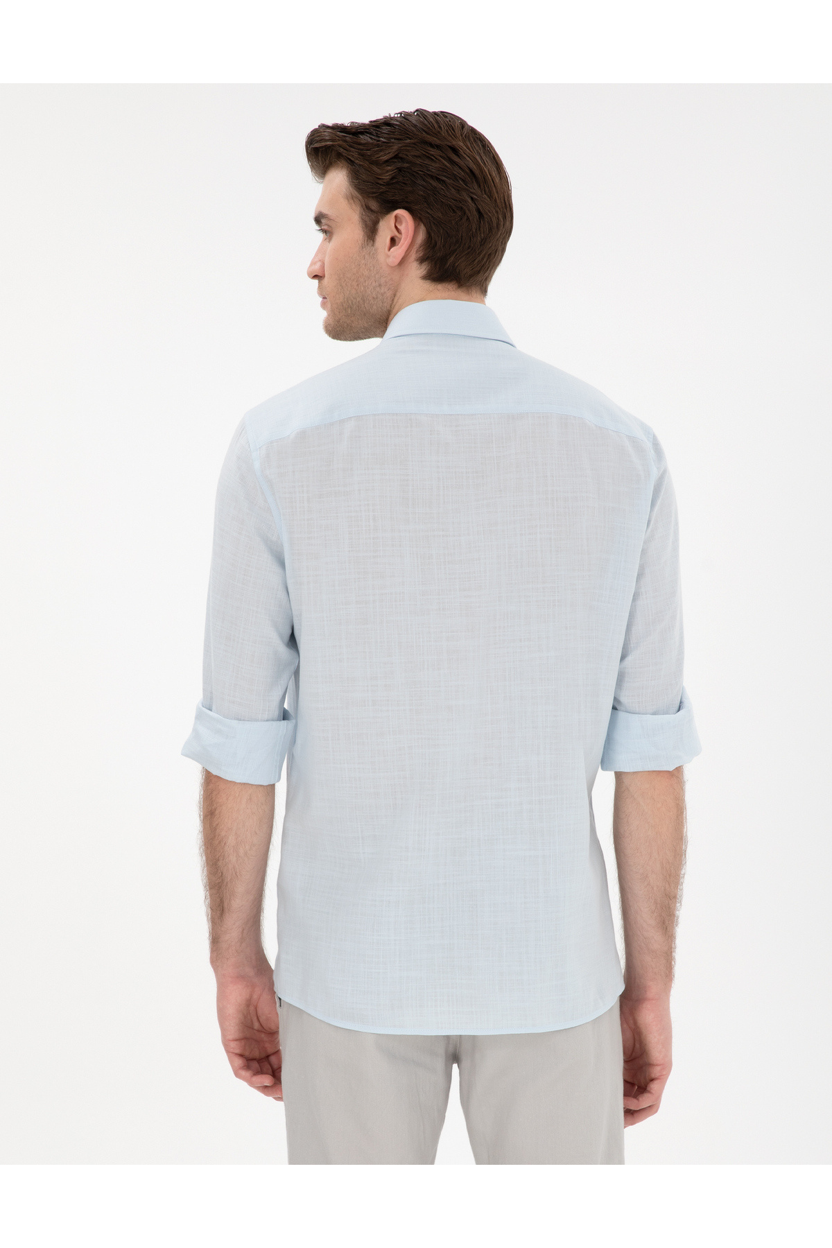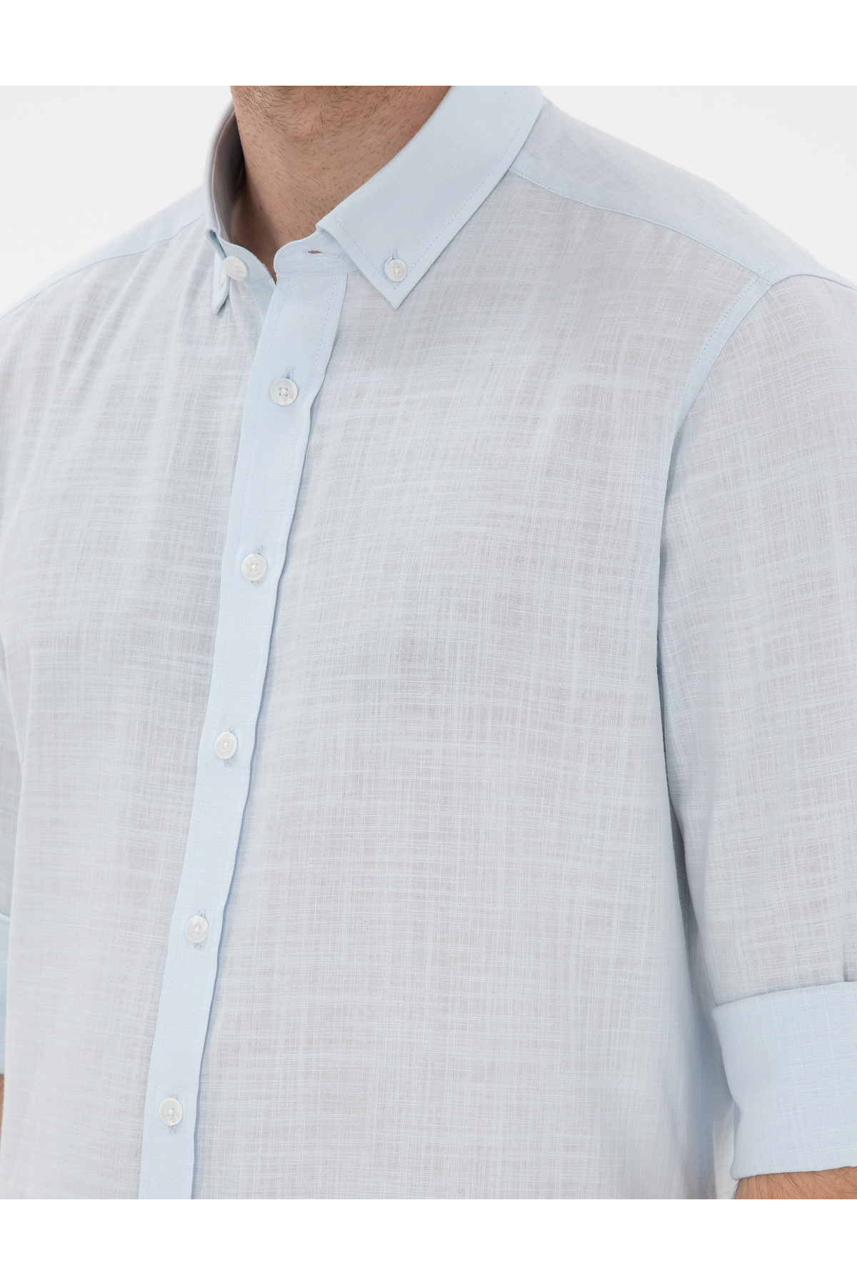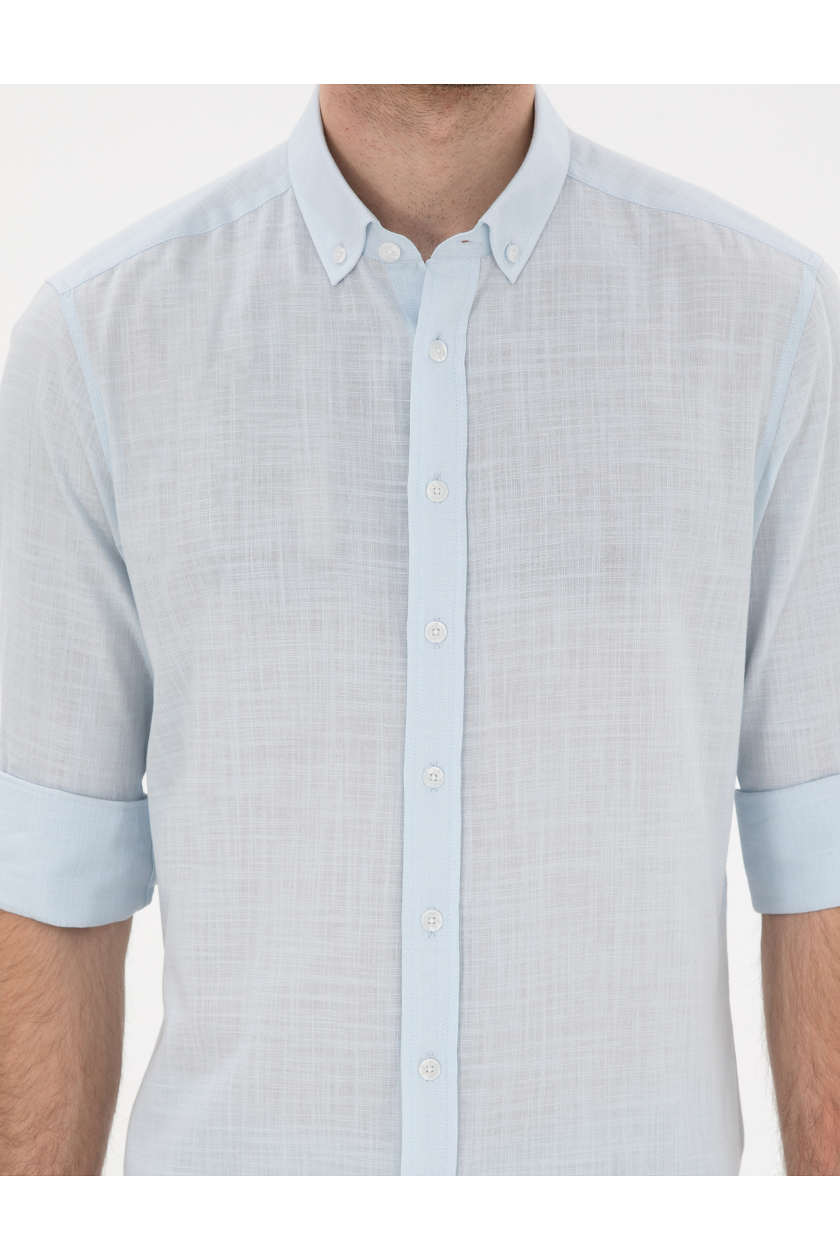 پیراهن آستین بلند طرح کتان آبی روشن، اسلیم فیت، کد ۵۰۳۰۲۷۱۰-VR003