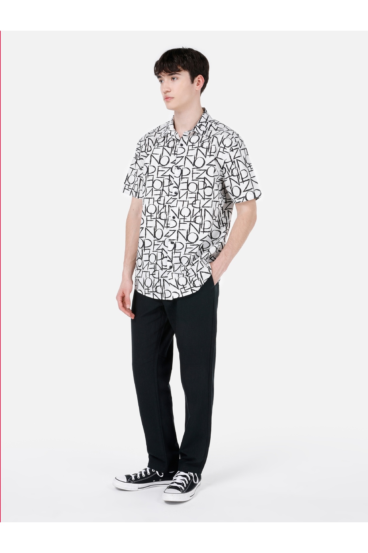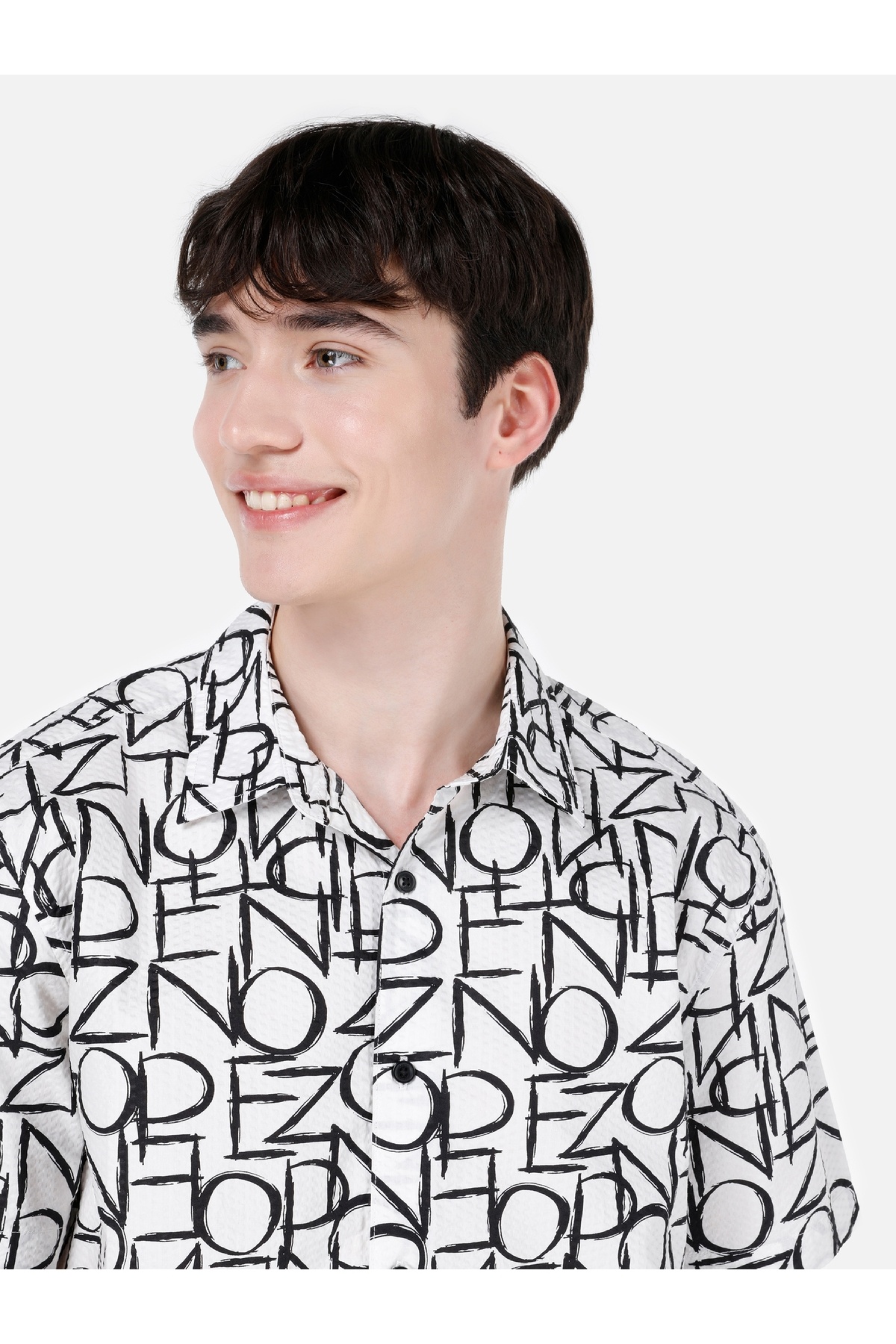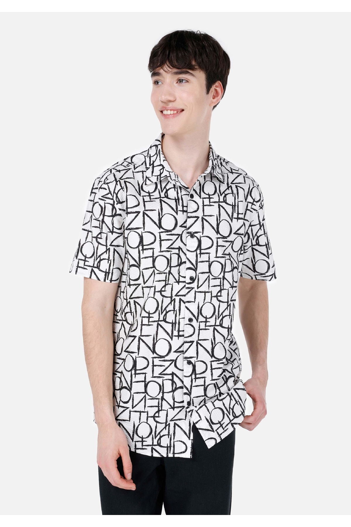 پیراهن آستین کوتاه مردانه سفید طرحدار یقه گرد معمولی