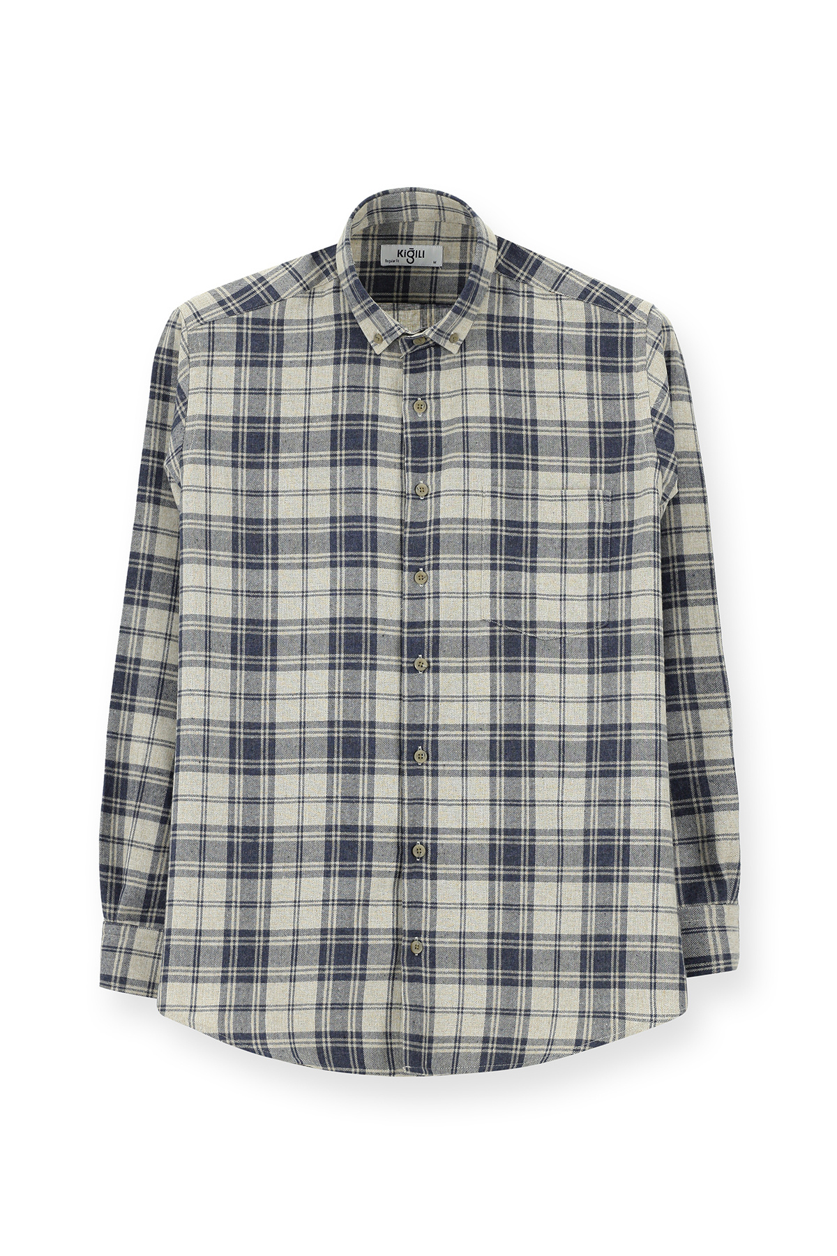 پیراهن ورزشی آستین بلند طرح شطرنجی معمولی، یقه دکمهدار نخی، طرح چوب