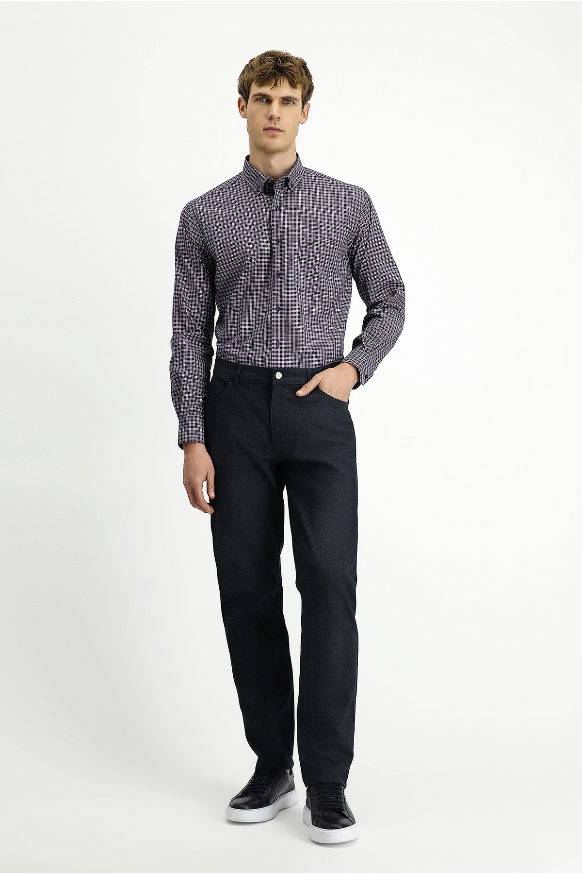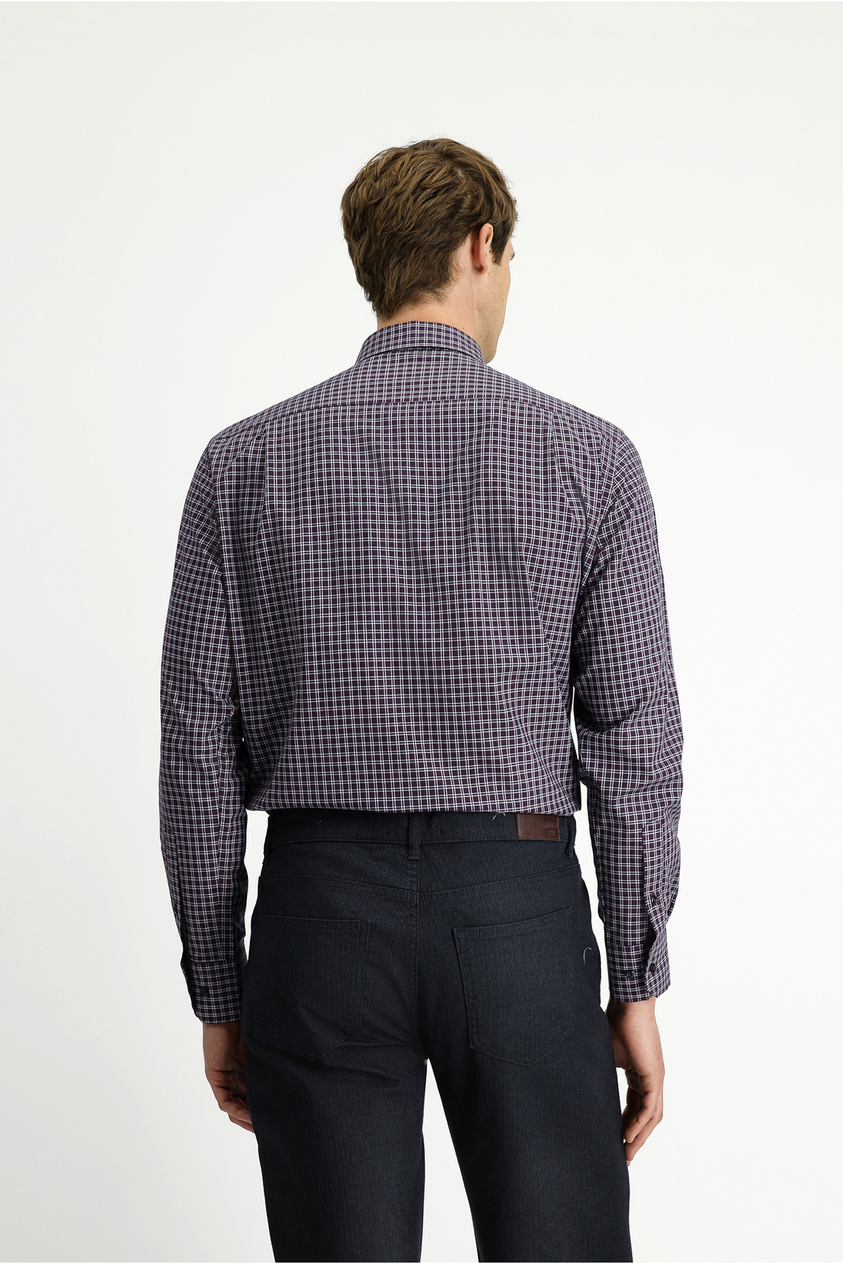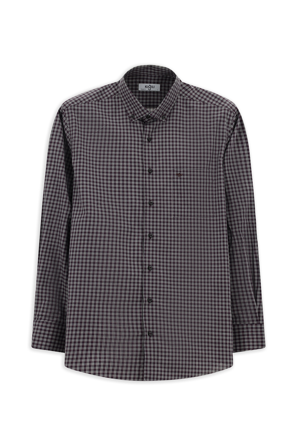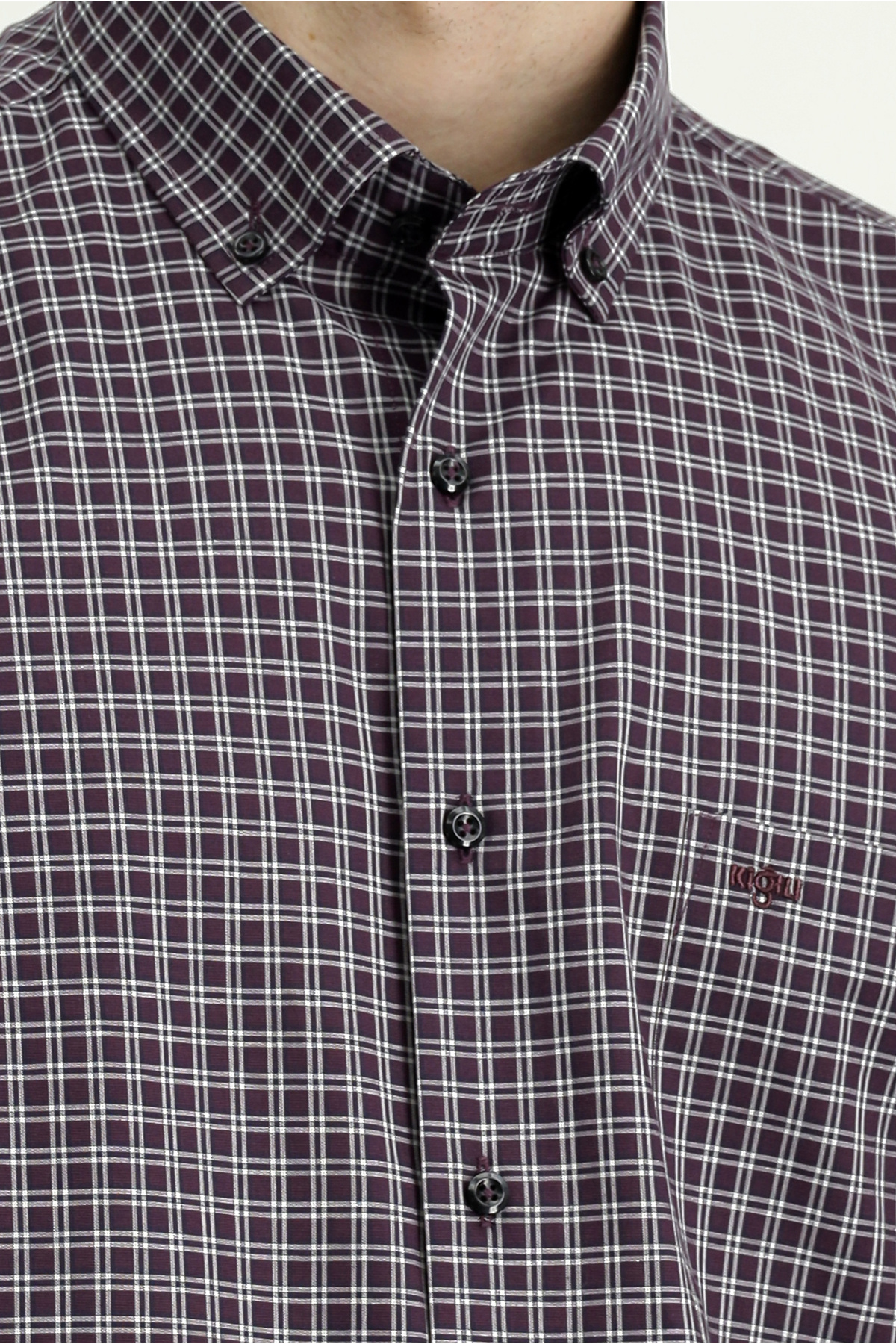 پیراهن نخی دکمهدار آستین بلند چهارخانه معمولی