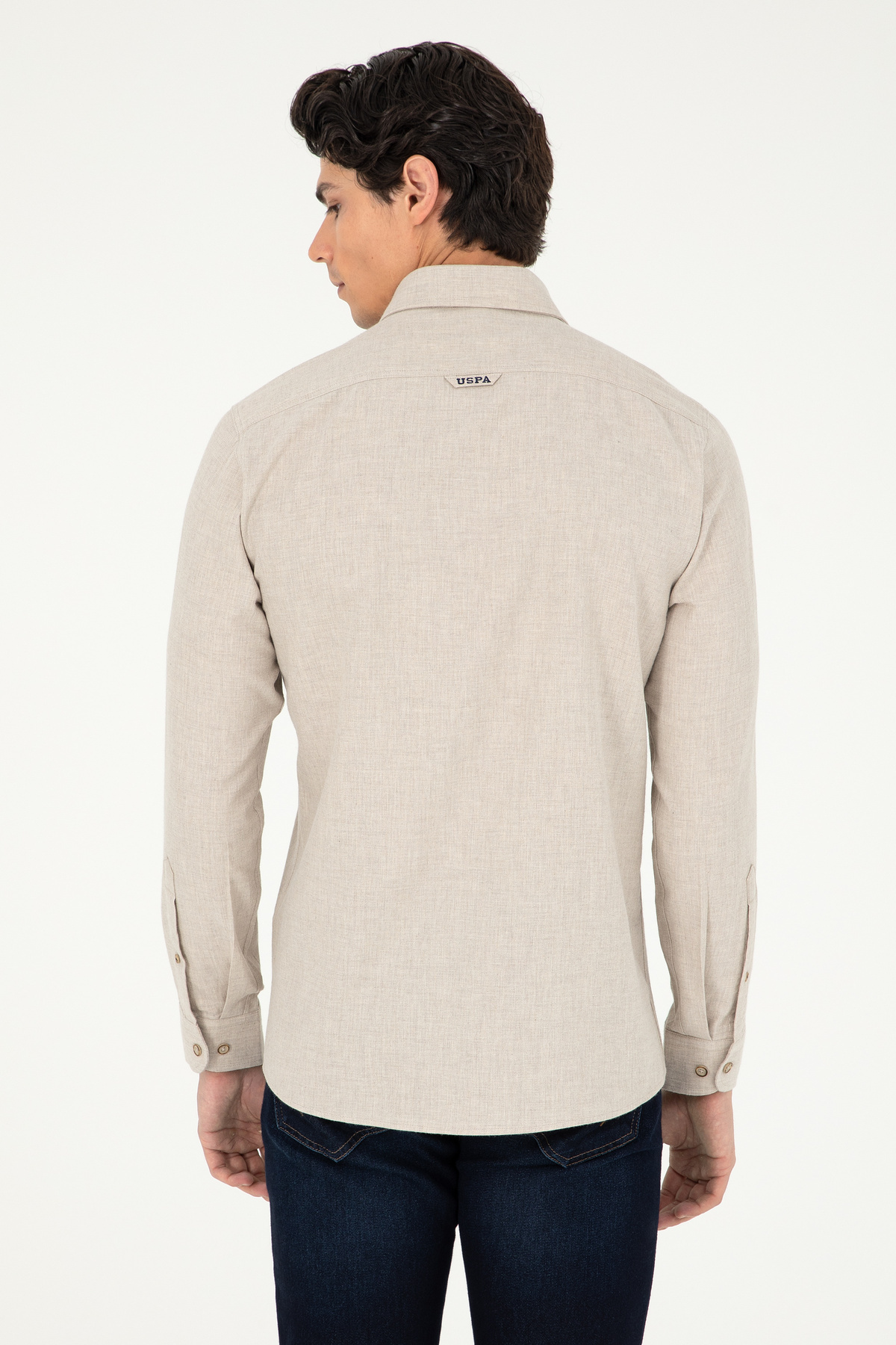 پیراهن مردانه آستین بلند بژ رنگ ساده 50293980-VR011