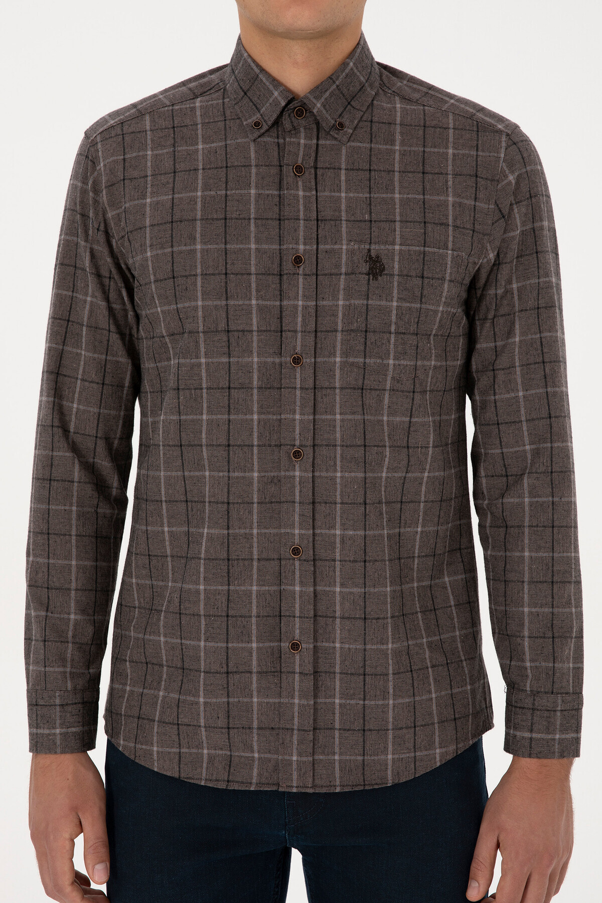 پیراهن مردانه قهوه ای یو اس پولو | 50308555 اورجینال