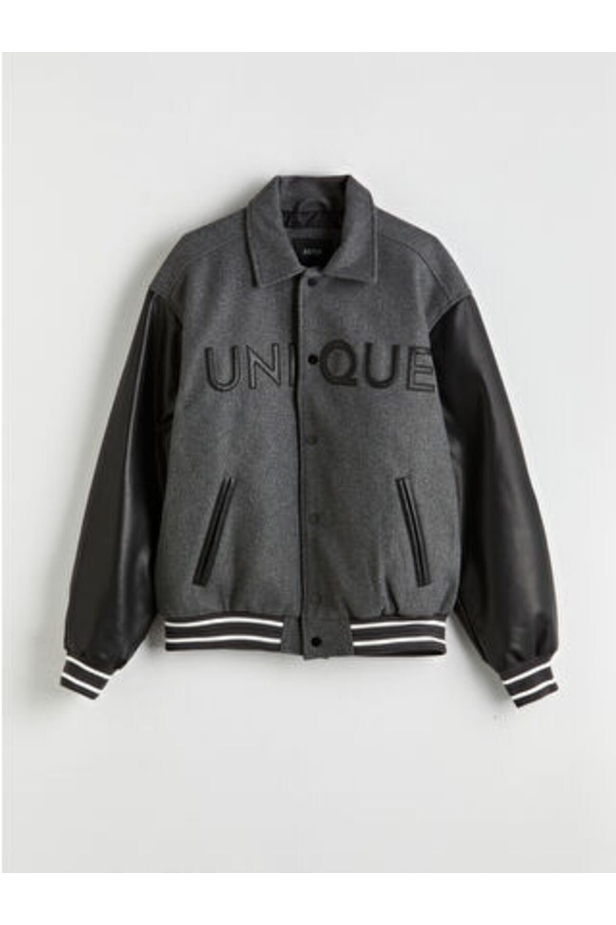 کت مردانه XSIDE یقه پیراهن خاکستری با آستینهای چرمی