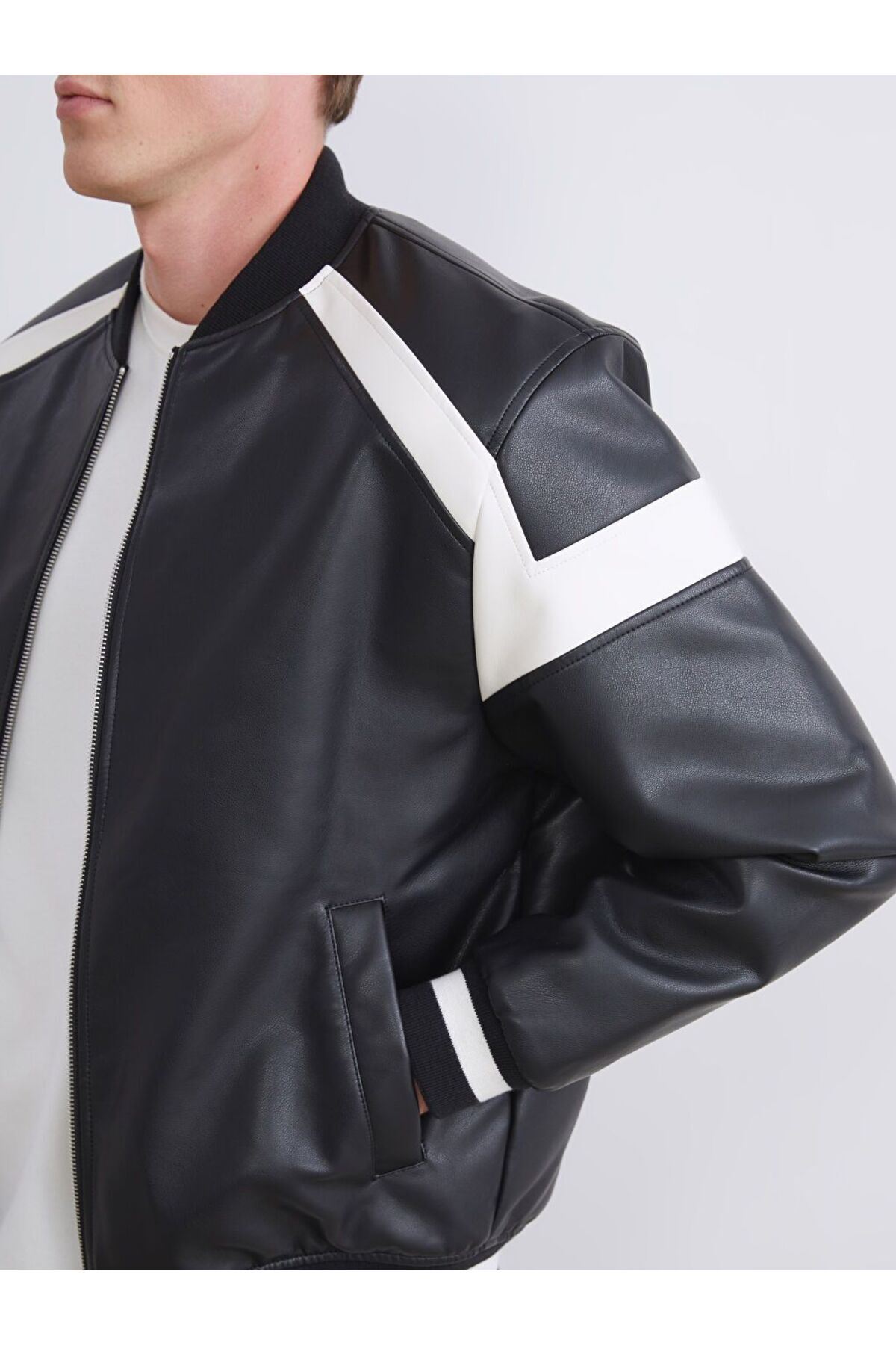 کاپشن چرمی مردانه XSIDE با یقه کالج استاندارد و مناسب