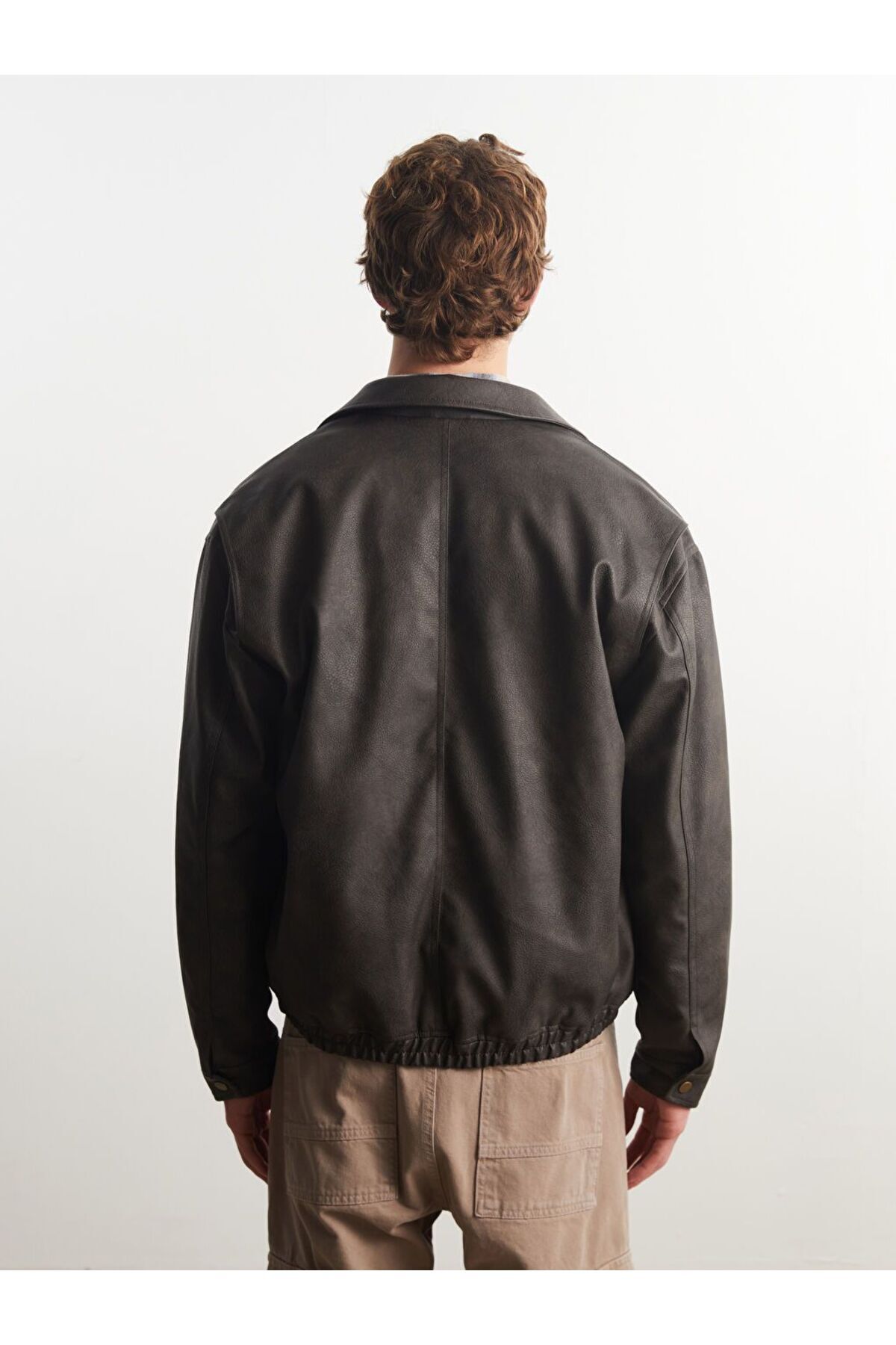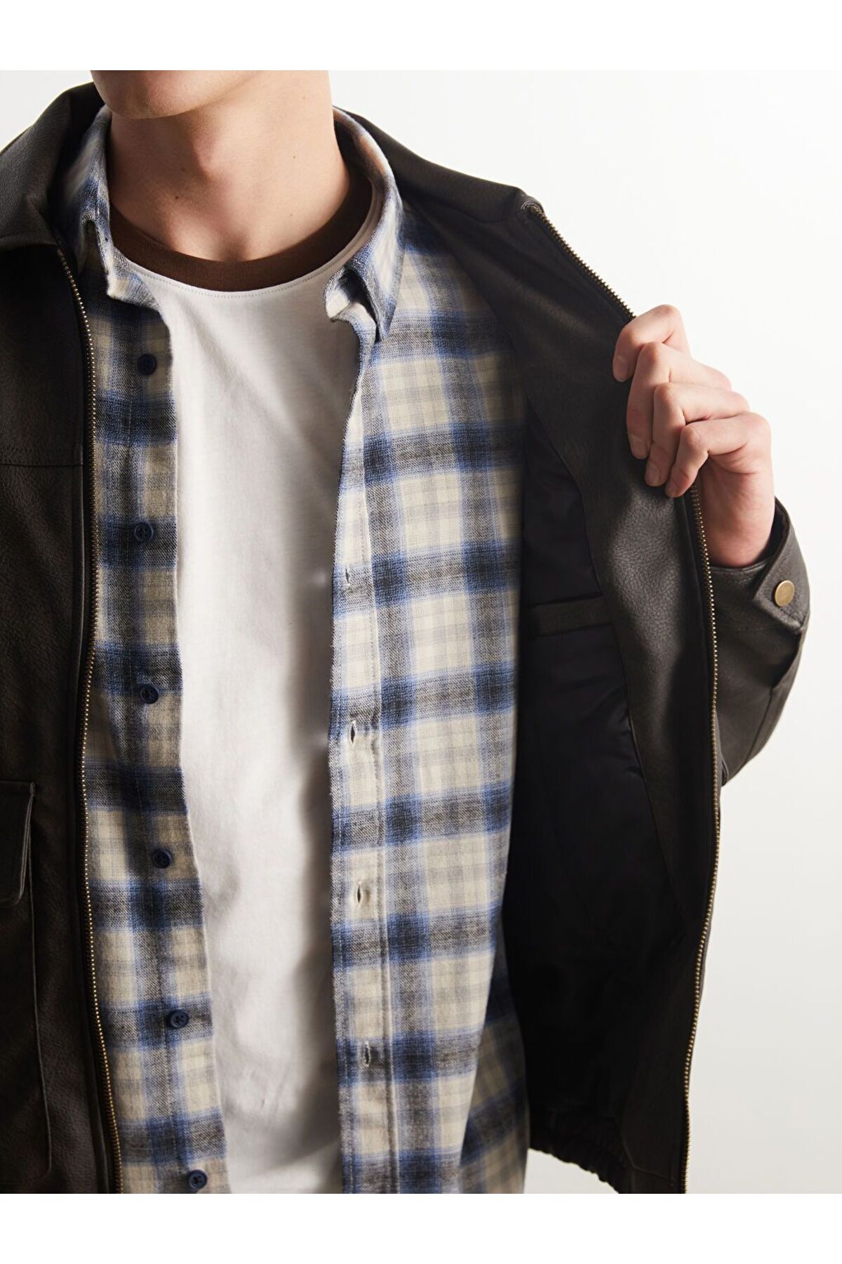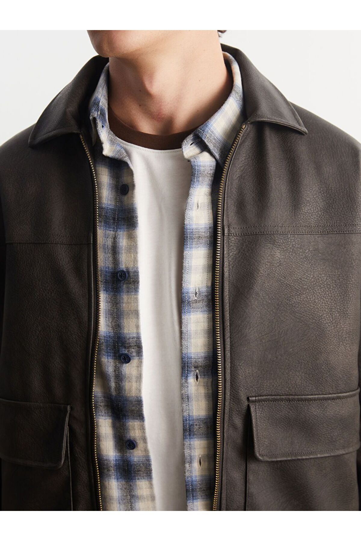 ژاکت چرمی مردانه XSIDE با یقه پیراهن طرح استاندارد