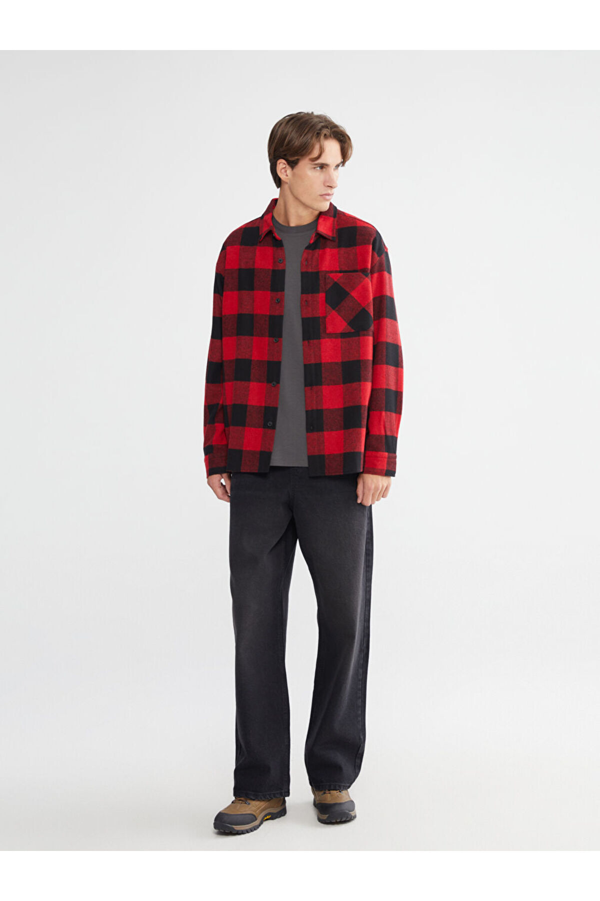 ژاکت پیراهن مردانه طرح چوب با آستین بلند و گشاد