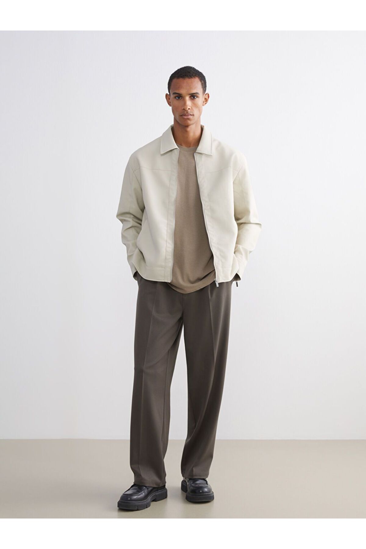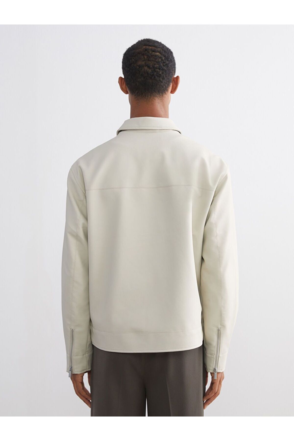 کاپشن چرمی مردانه طرح استاندارد یقه پیراهنی LCW Vision