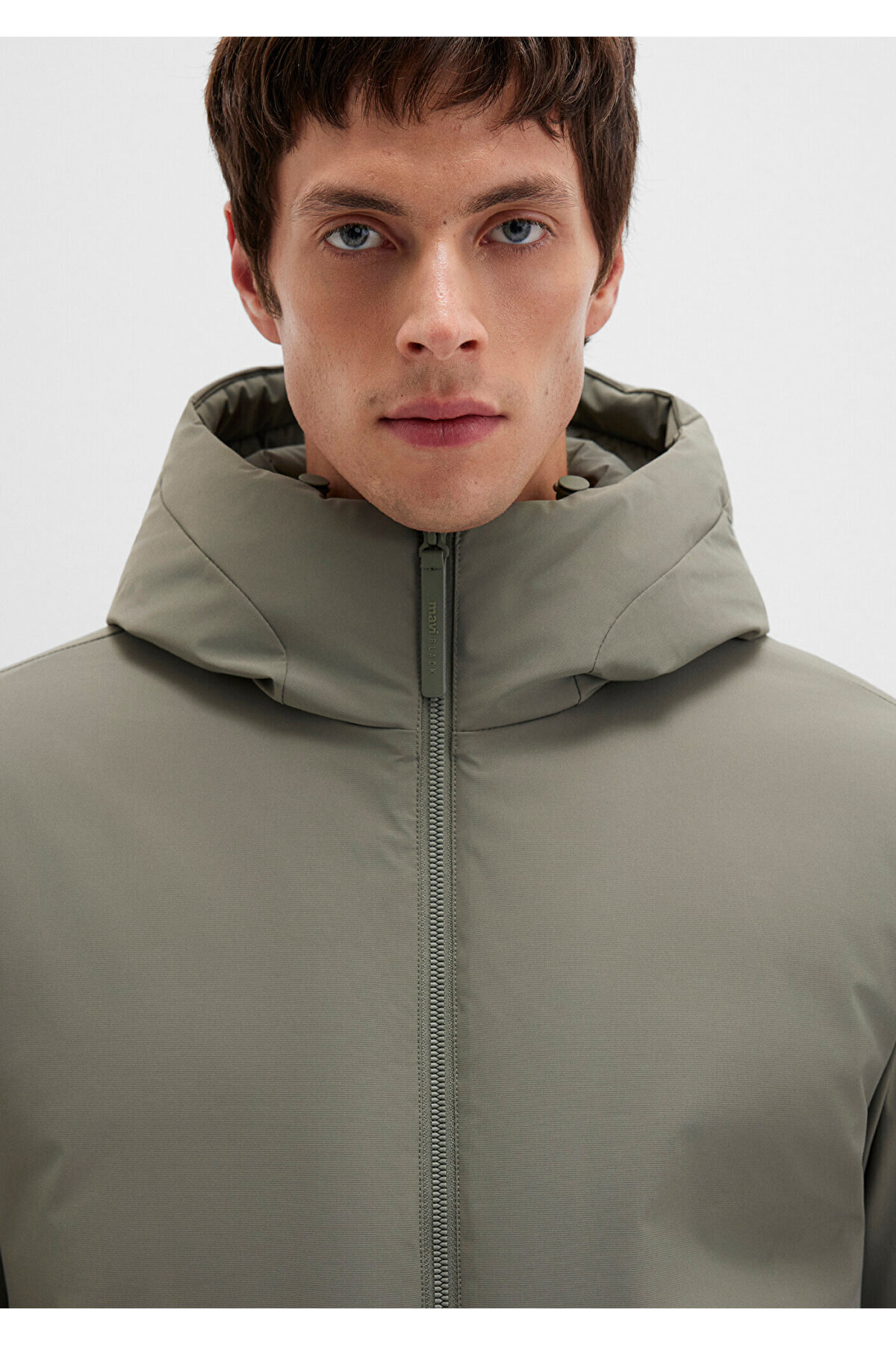 پالتو سبز کلاهدار، گشاد و راحت، برش آزاد 0110617-85485