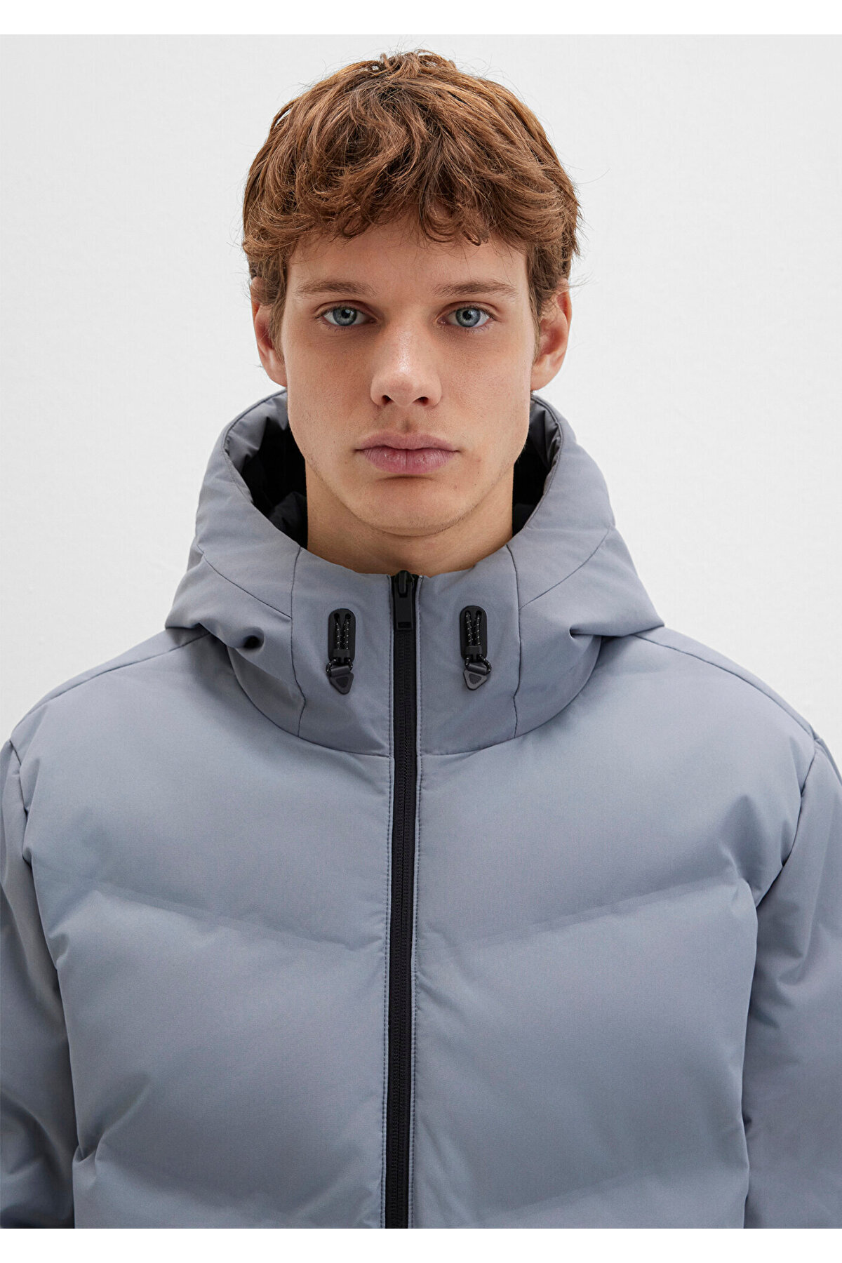 کاپشن پفی خاکستری کلاه دار ضد آب 0110651-85550