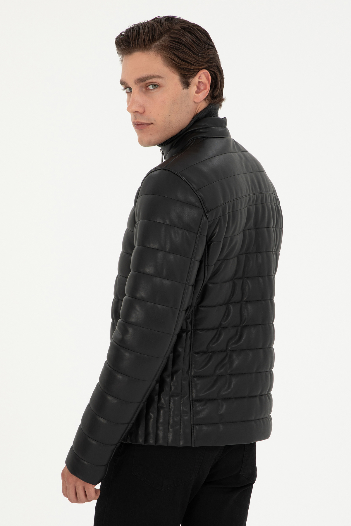 کاپشن چرم مردانه مشکی ۵۰۲۹۷۲۵۱-۰۰۱