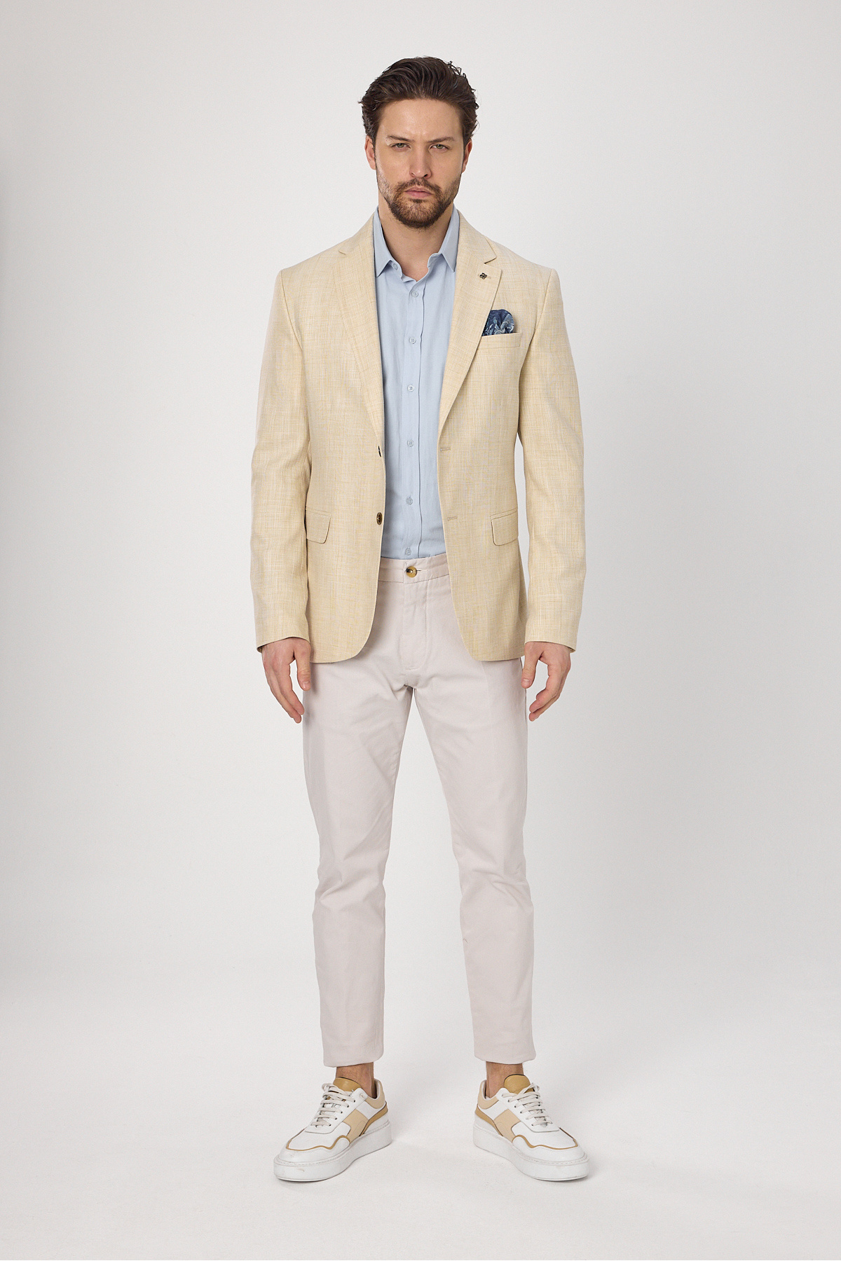 کاپشن بلیزر چهارخانه مردانه Zenos مدل کتان بژ