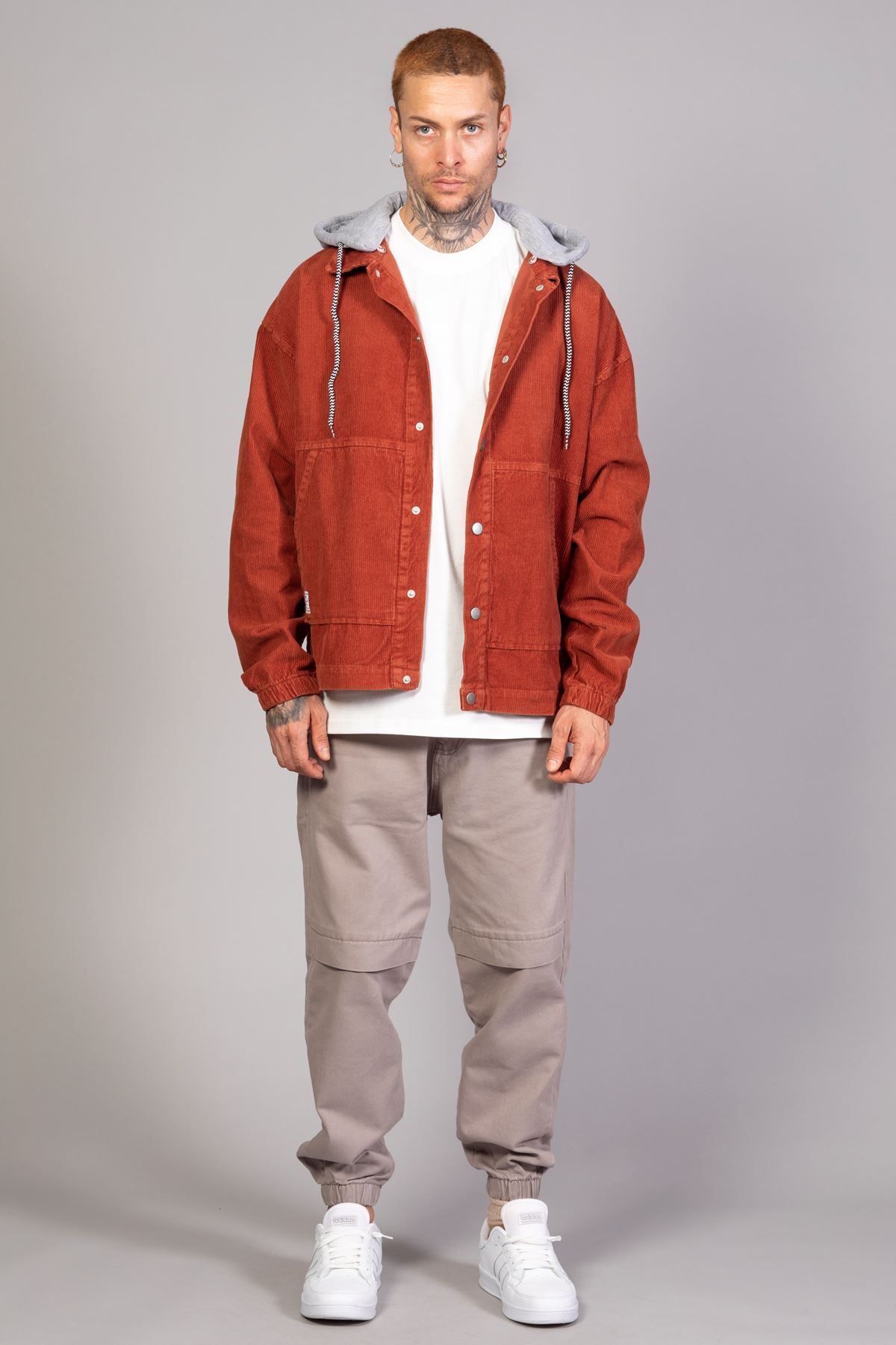 ژاکت مخمل نخی مردانه سایز بزرگ طرح کاشی با کلاه جداشونده