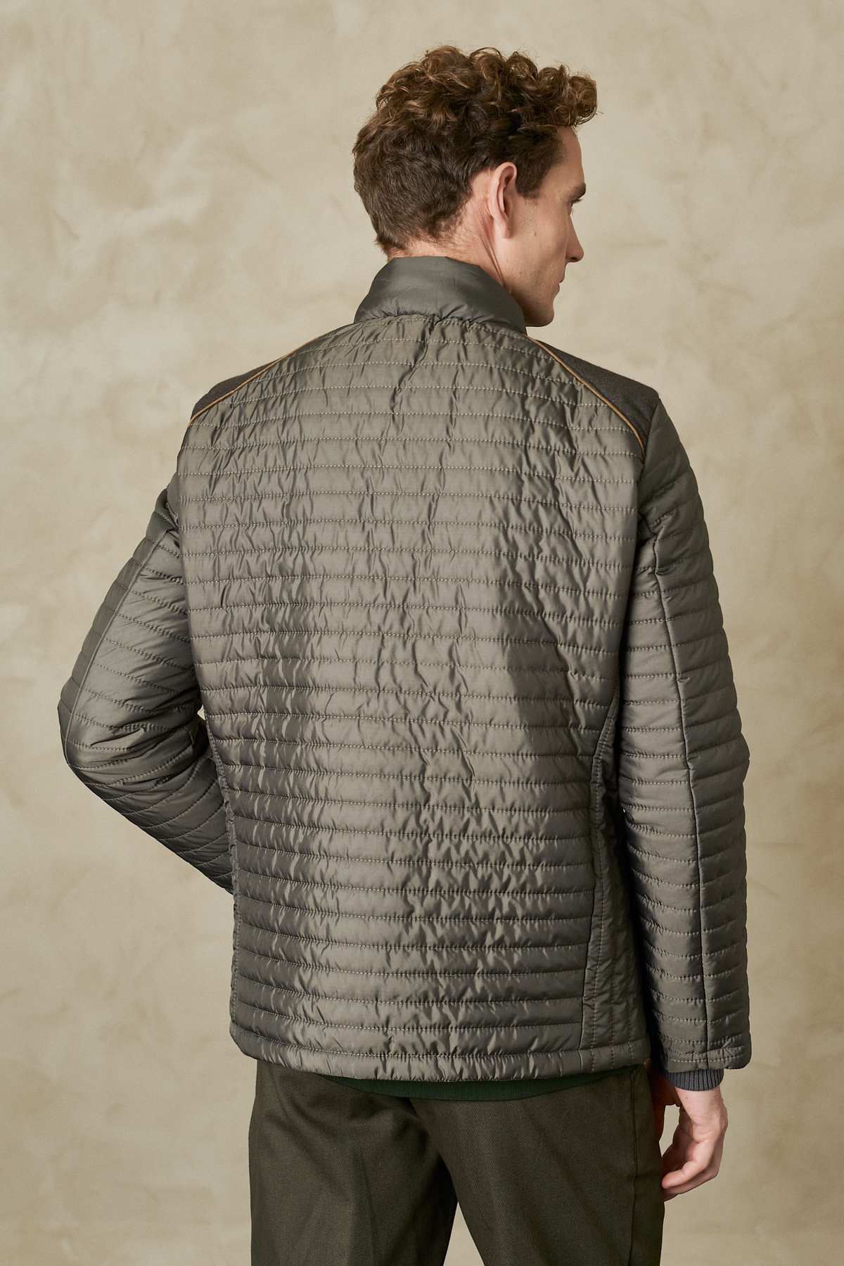 کاپشن پفی طرح‌دار مردانه خاکی استاندارد، برش معمولی، ضد آب و هوای سرد