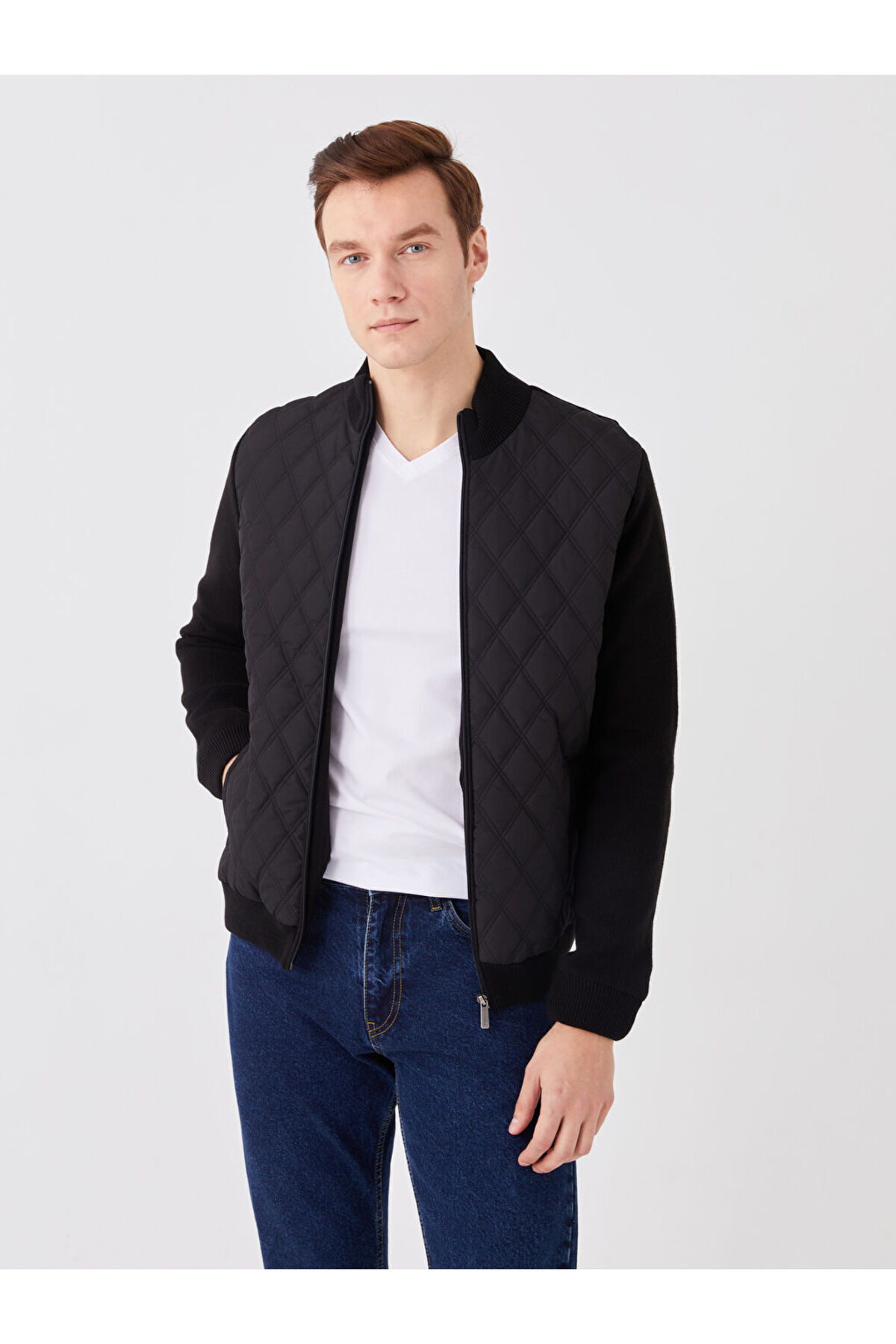 کت بافتنی مردانه یقه ایستاده طرح استاندارد مشکی
