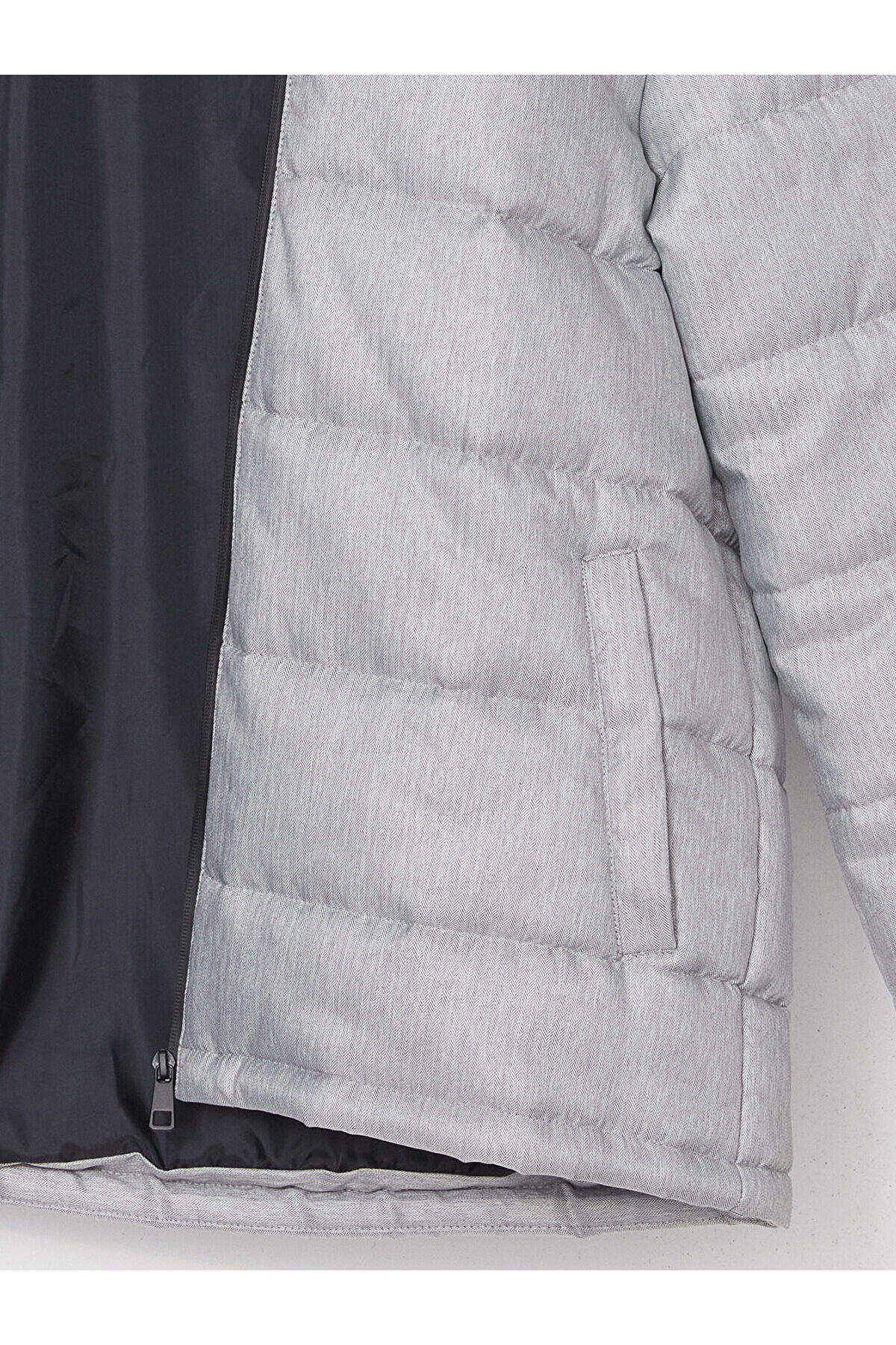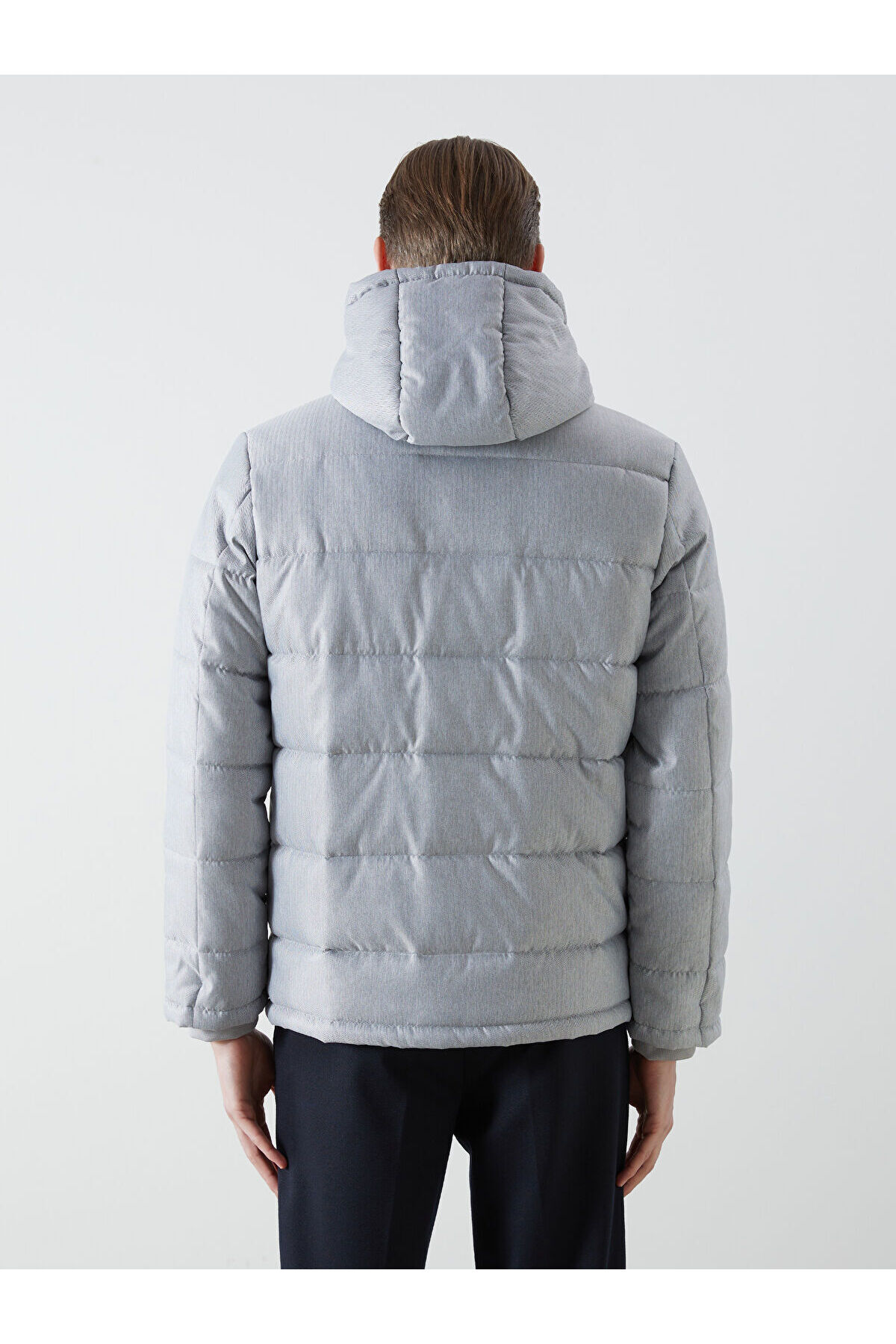 کاپشن پفی مردانه کلاه دار خاکستری طرح استاندارد