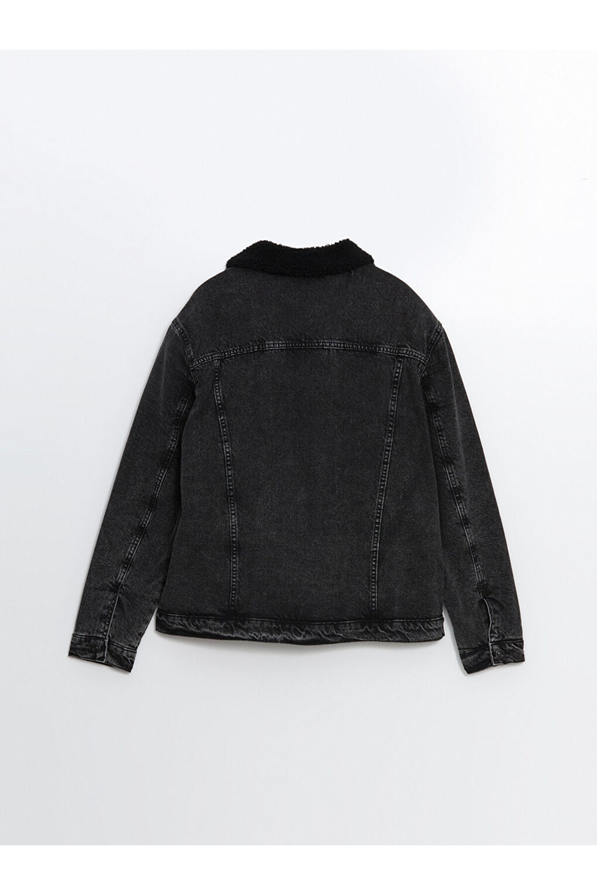 پالتو مردانه جین LCW مشکی، یقه خزدار، راحت و مناسب