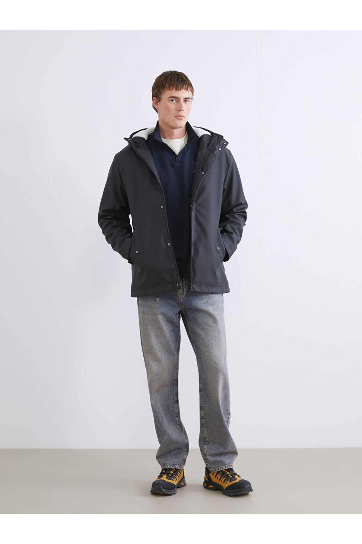 پالتو مردانه کلاه‌دار مشکی استاندارد فیت