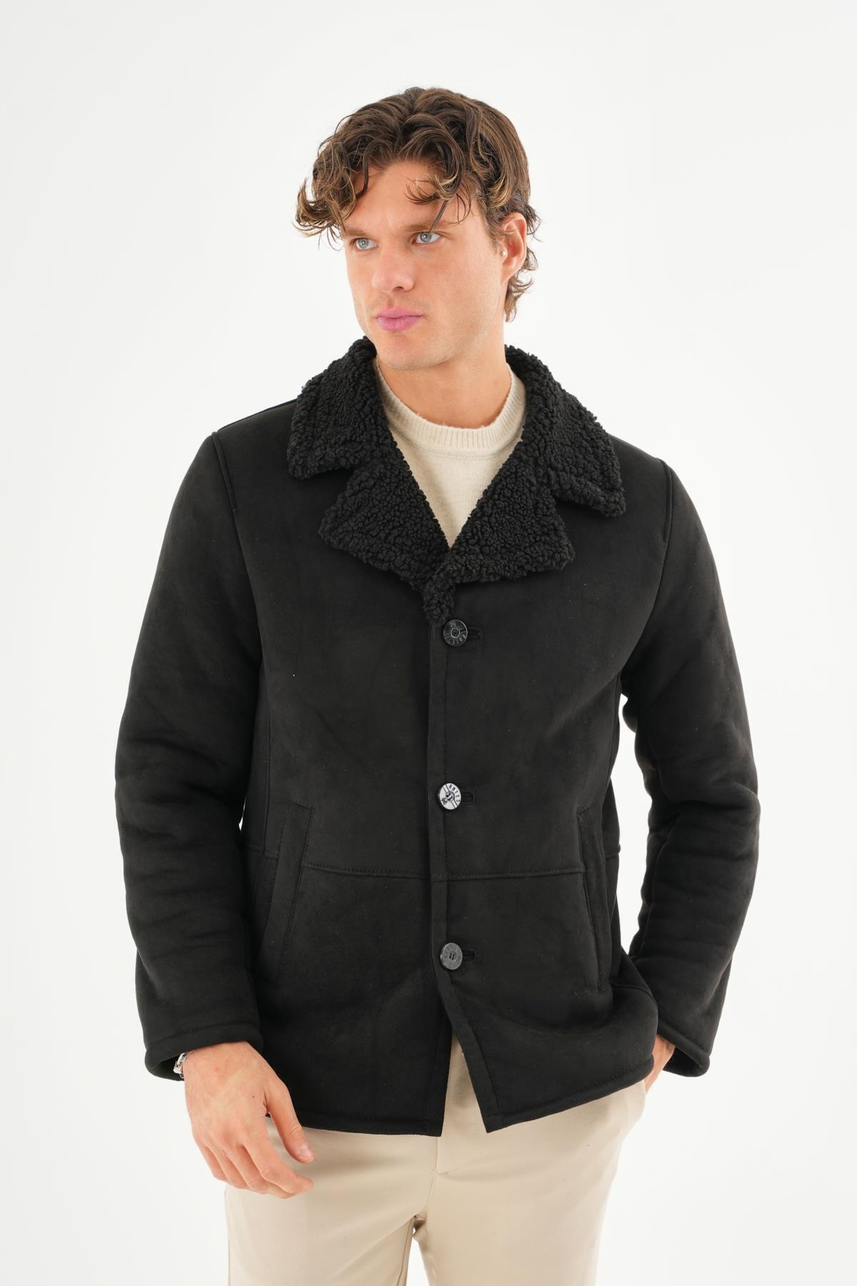 کت جیر کلاسیک مردانه سایز معمولی، آستر خزدار، دکمهدار، یقه تا شده، جیب کناری