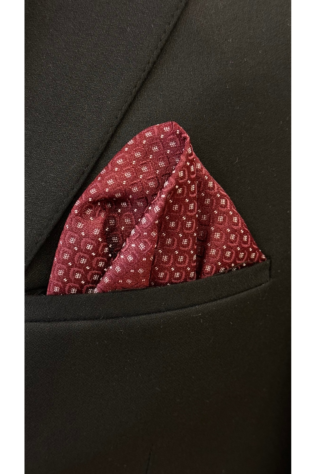 ست کراوات و دستمال جیبی ممتاز با جعبه کادویی طرحدار زرشکی