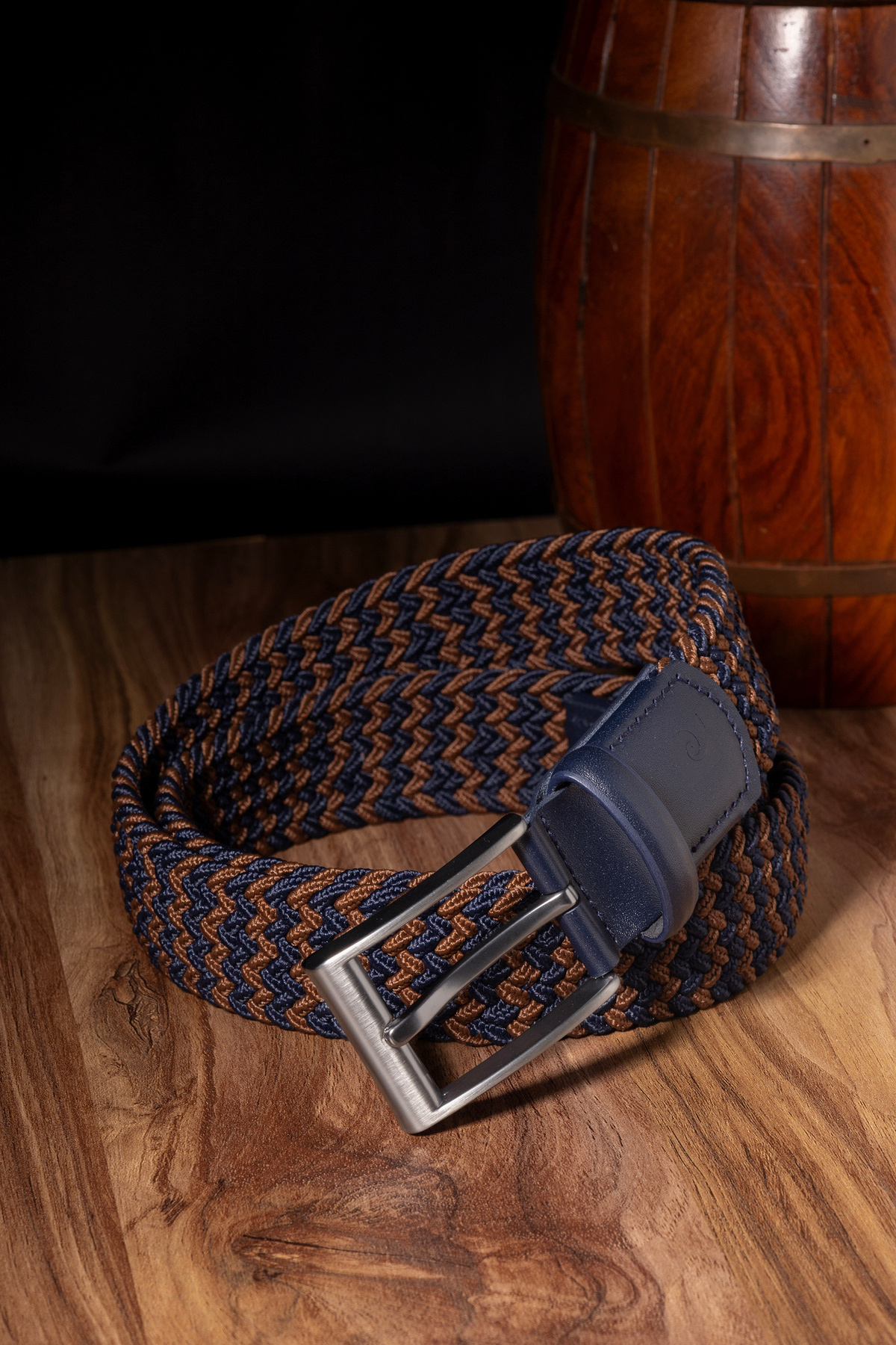 کمربند مردانه بافتنی قهوهای-آبی سرمهای (عرض ۳.۵ سانتیمتر) PC-174K7L