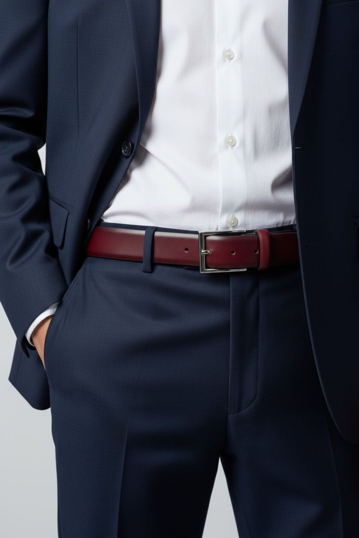 کمربند مردانه ۱۰۰٪ چرم اصل، بدون درز، به رنگ زرشکی کلاسیک، ۳.۵ سانتیمتر