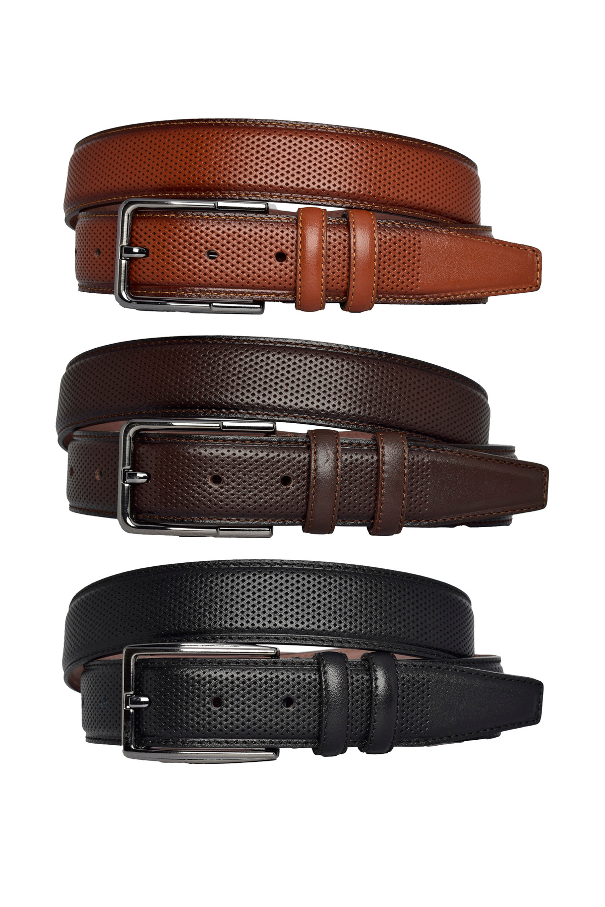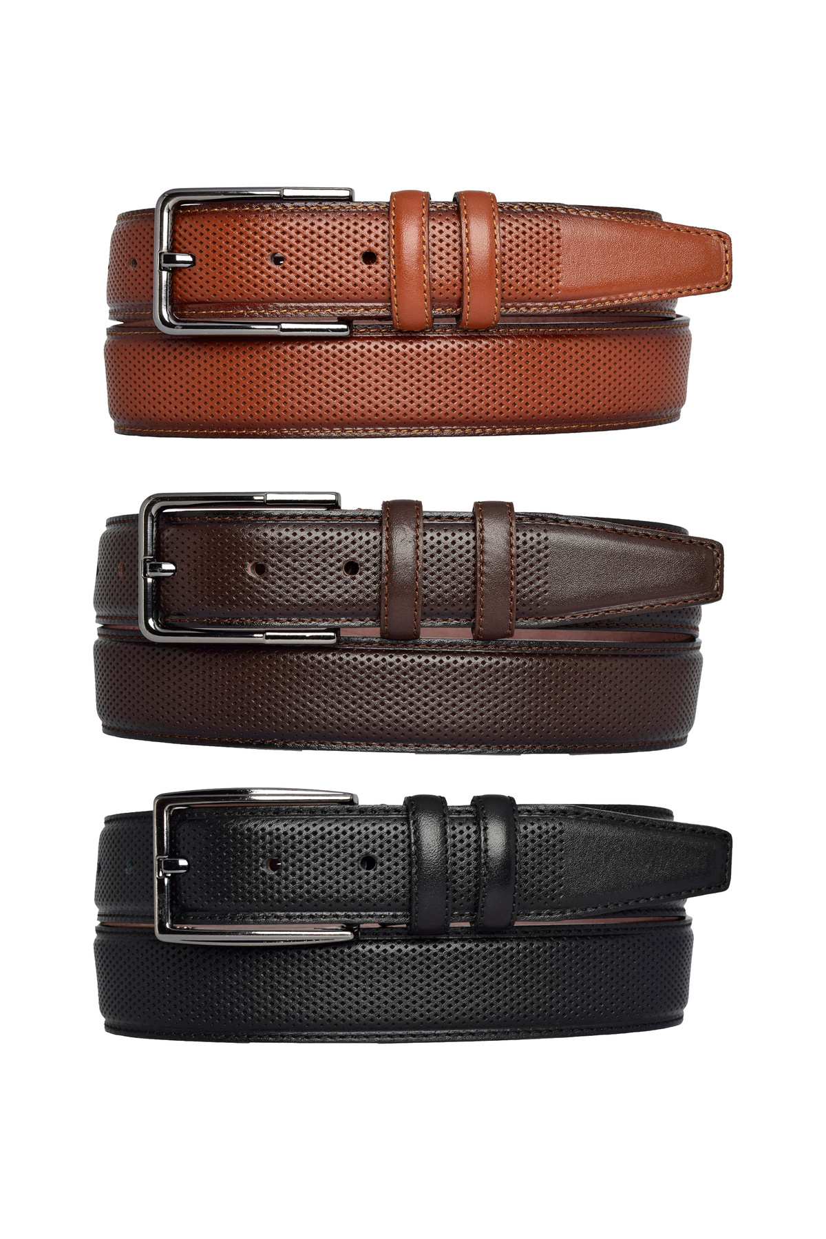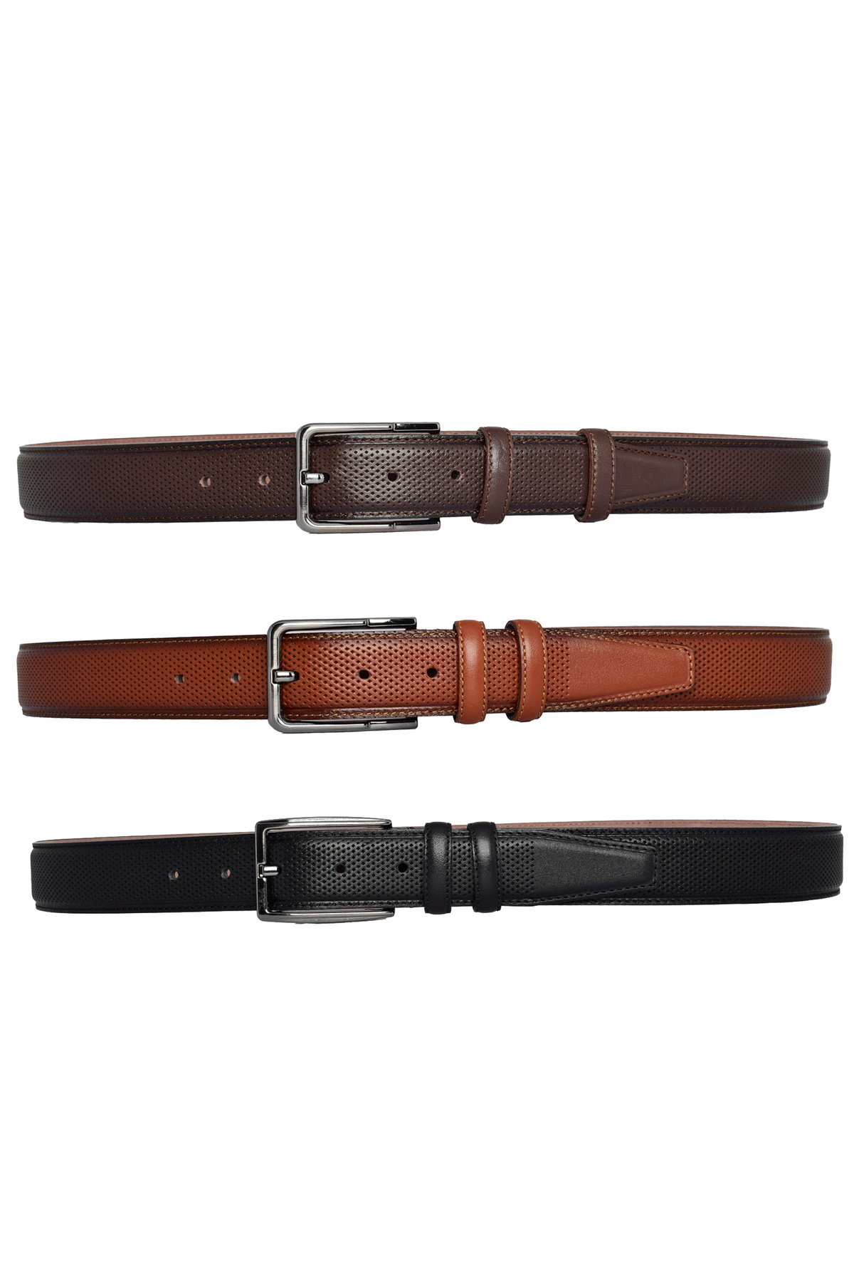 ۱۰۰٪ چرم اصل، ست ۳ تکه، مشکی، قهوهای مایل به قرمز، قهوهای تیره، کمربند شلوار پارچهای دوخته شده ۳.۵ سانتیمتر_خالدار