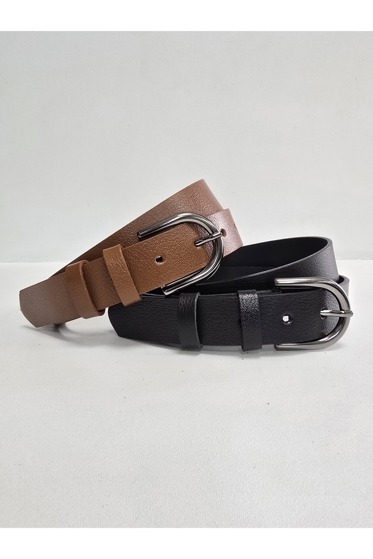ست کمربند دو تکه کلاسیک مشکی-قهوه‌ای ۱۰۰٪ چرم اصل