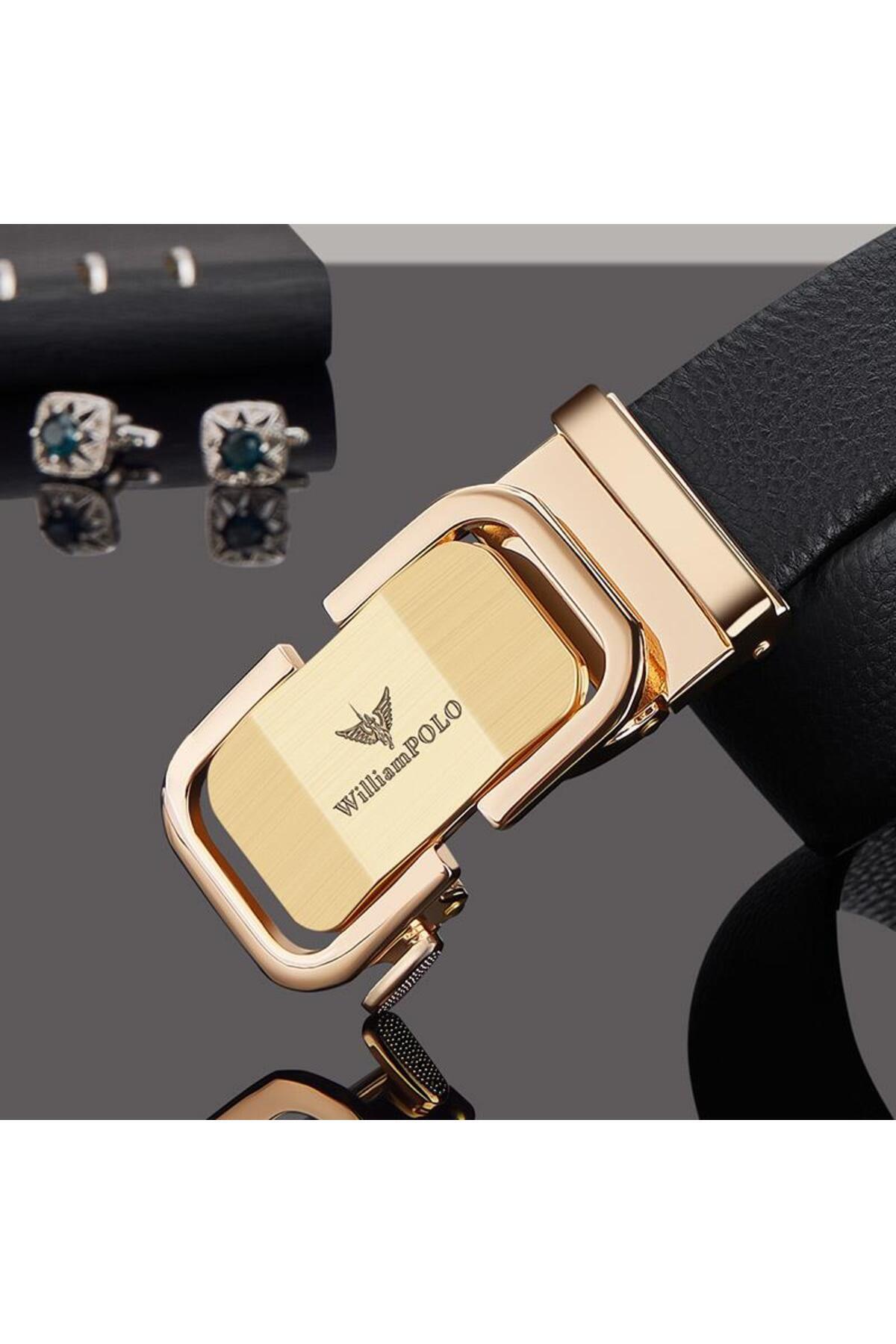 کمربند مردانه WilliamPolo از جنس چرم اصل و سگک فلزی طلایی