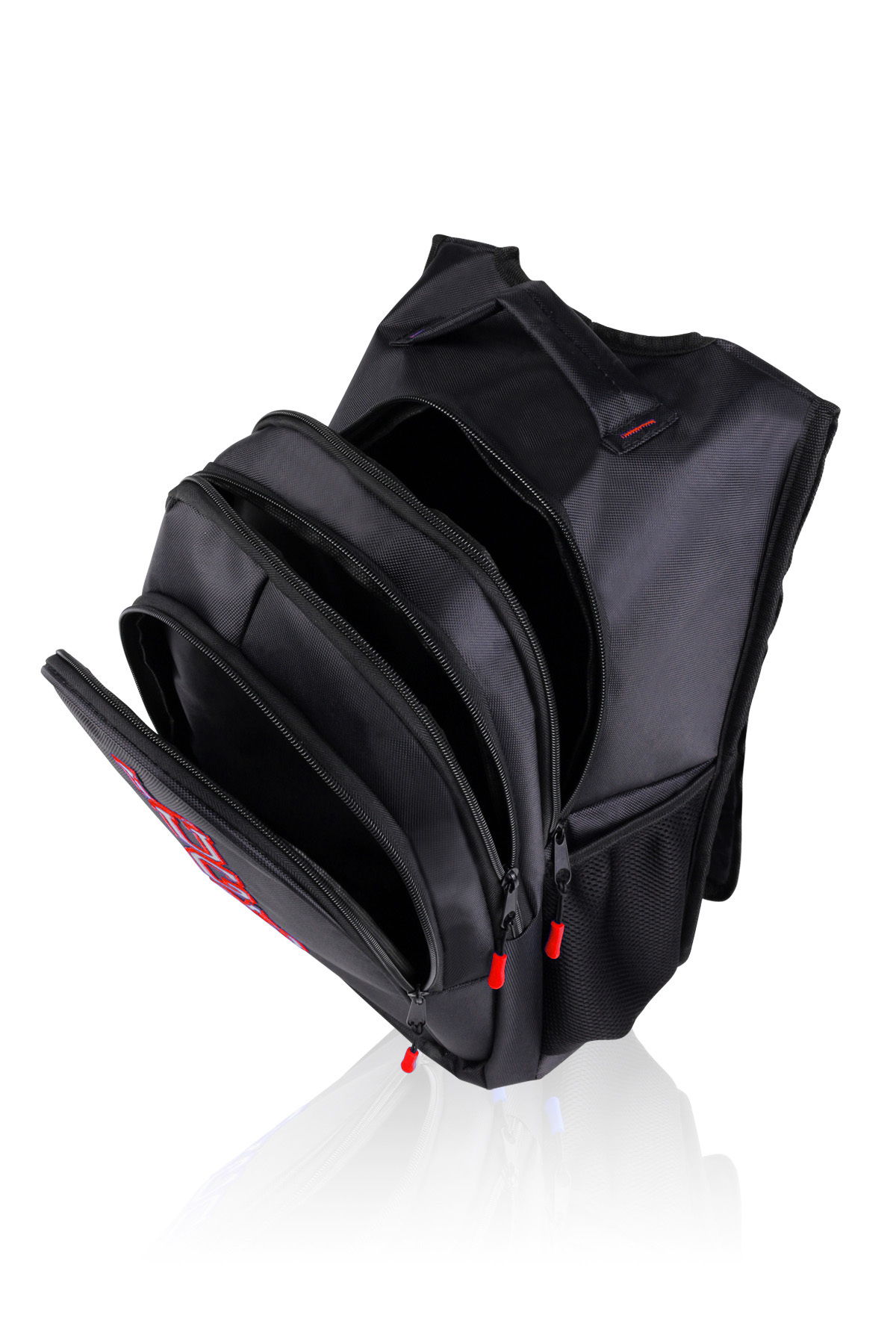 کیف مدرسه سه قسمتی، کیف مدرسه راهنمایی، کیف دبیرستانی با پشتی و پشتیبانی، رنگ قرمز، نشان
