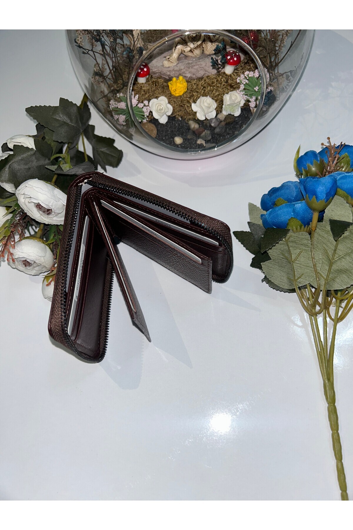 کیف پول زیپدار چرم طبیعی ۹۰۴۱ قهوهای