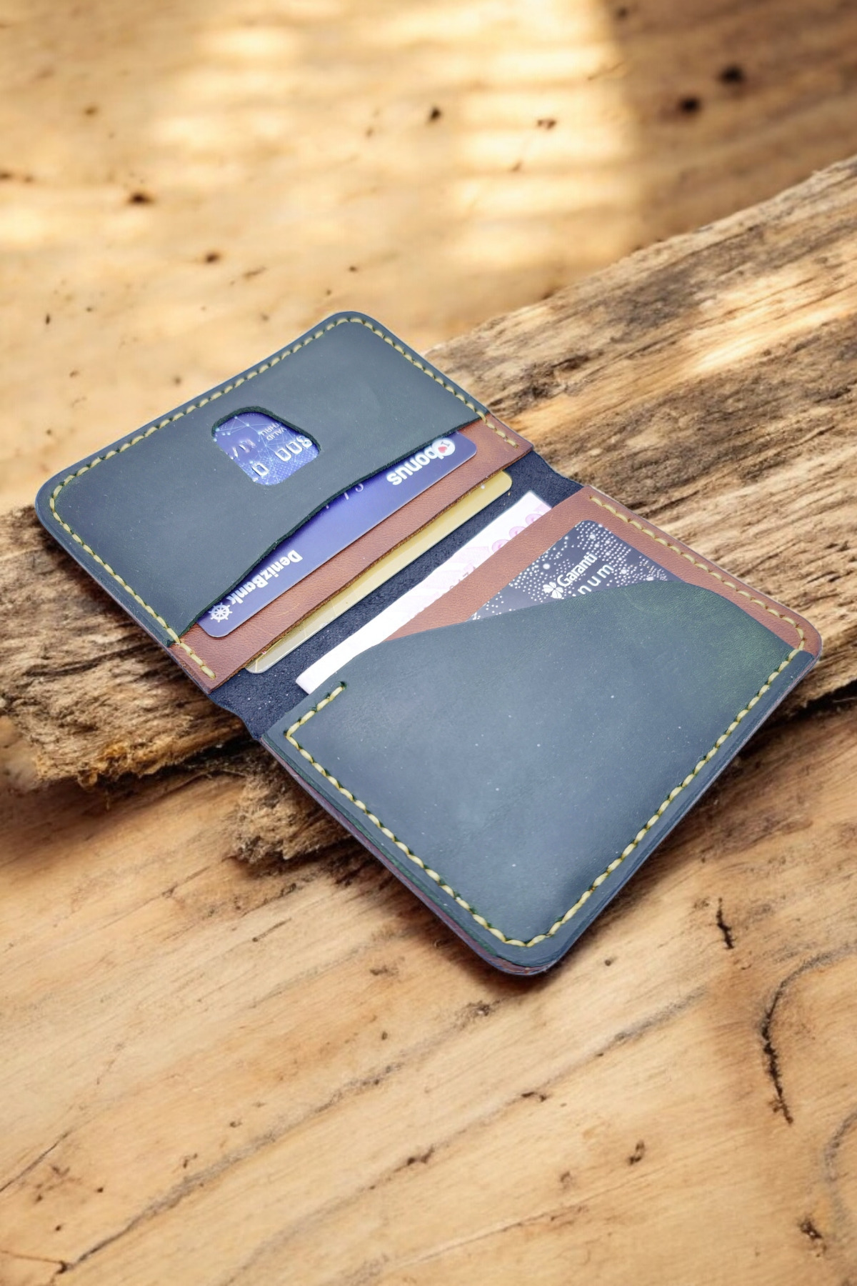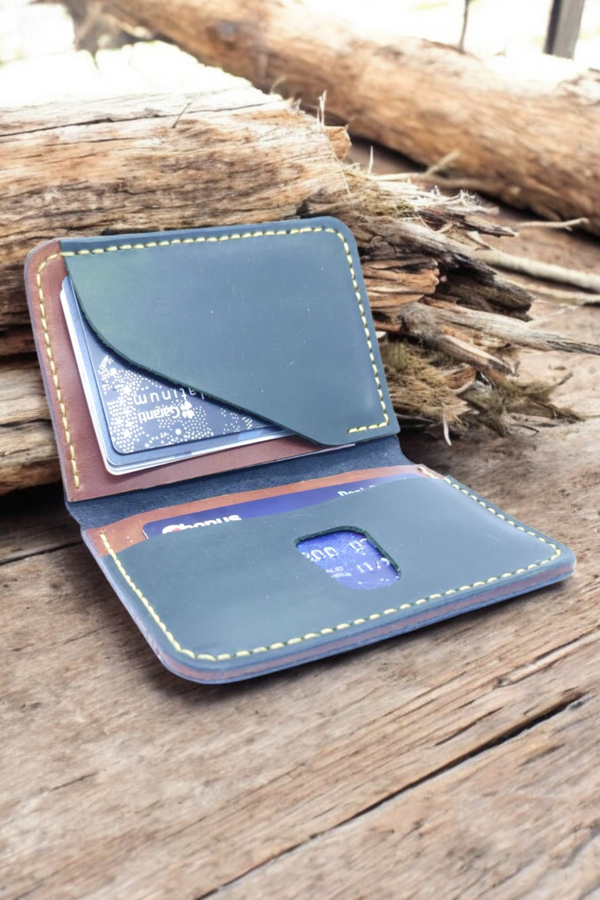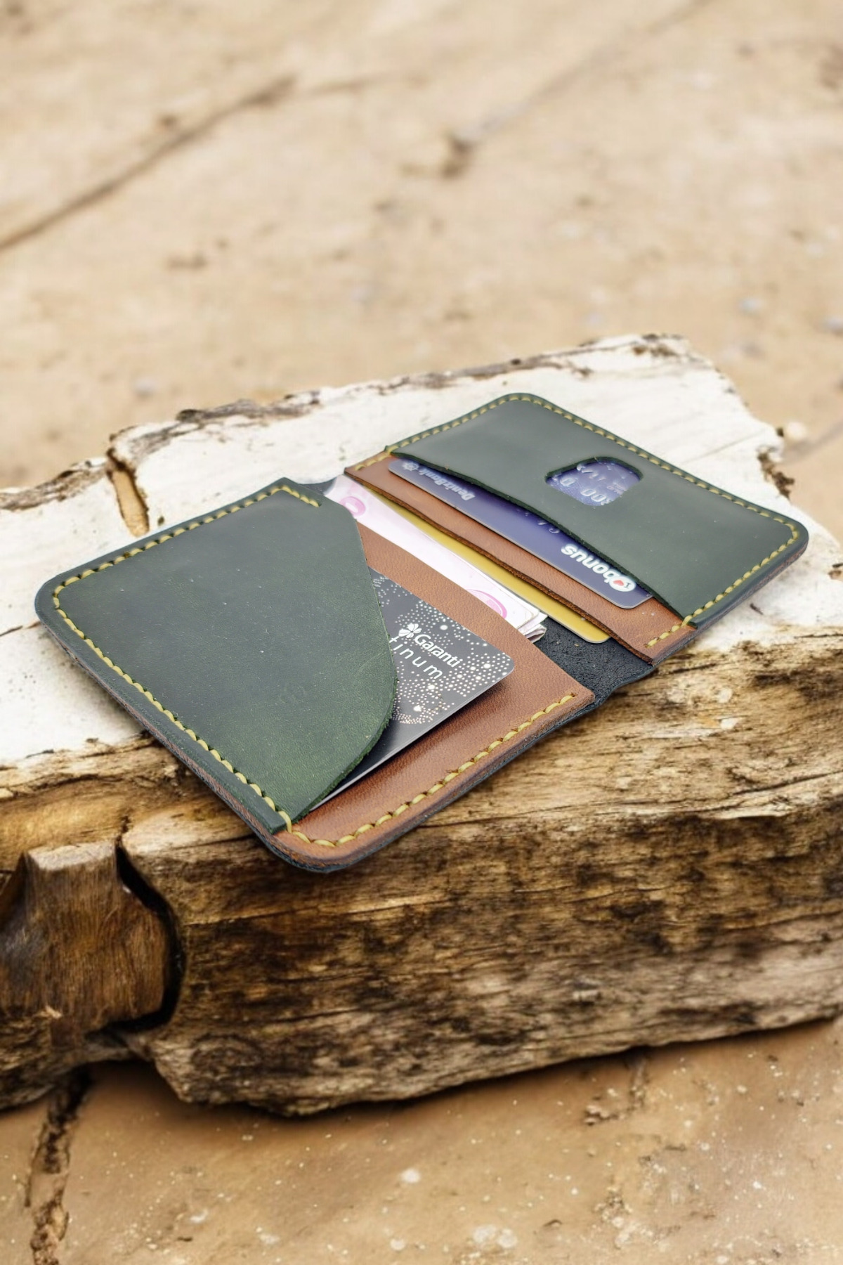 کیف پول زنانه چرم اصل سبز کنیاکی Cy Eclipse، جاکارتی مردانه، دستساز، مناسب برای آقایان و خانمها، با قابلیت نوشتن نام