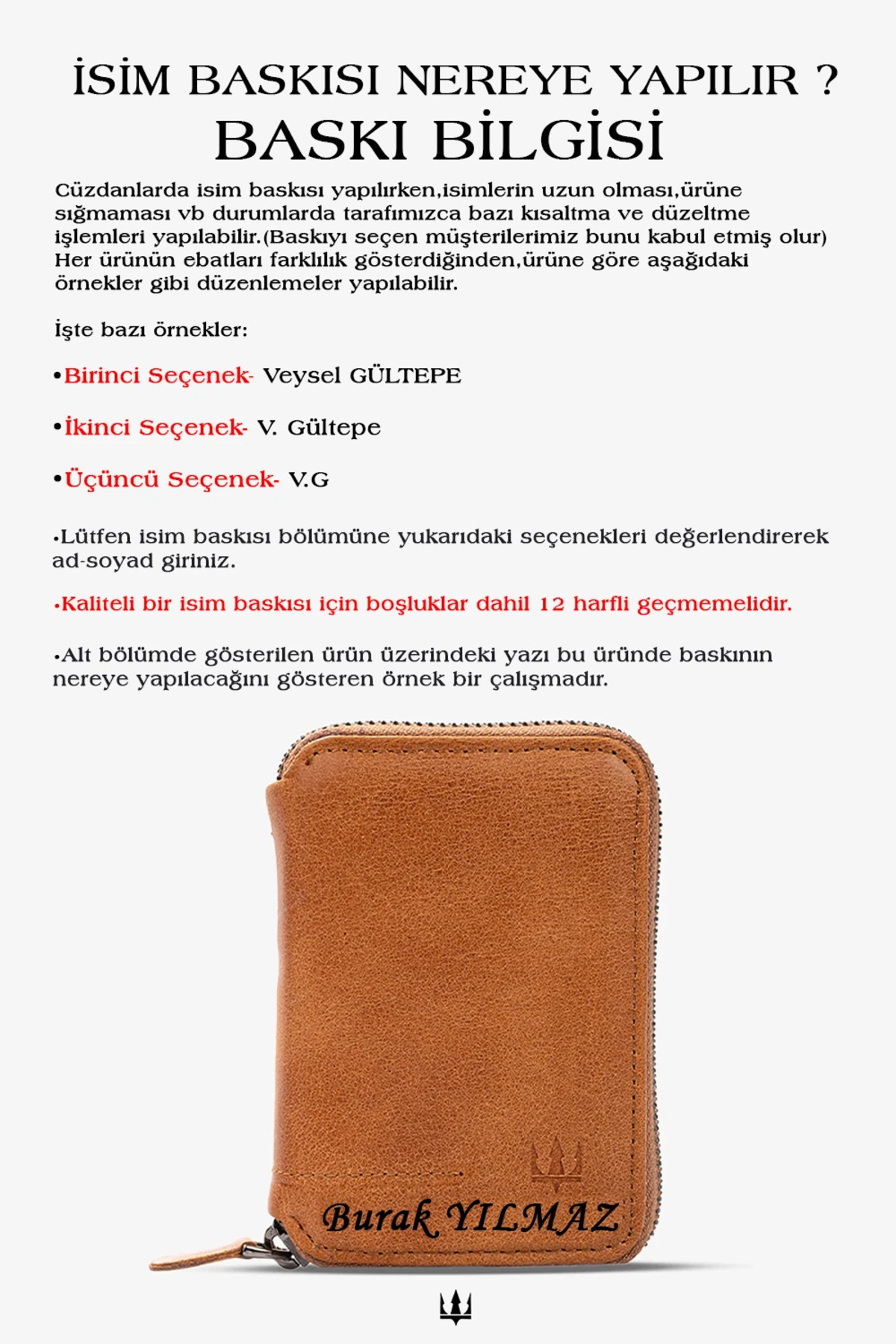 کیف پول زیپدار چاپشده با نام شخصی از جنس چرم اصل